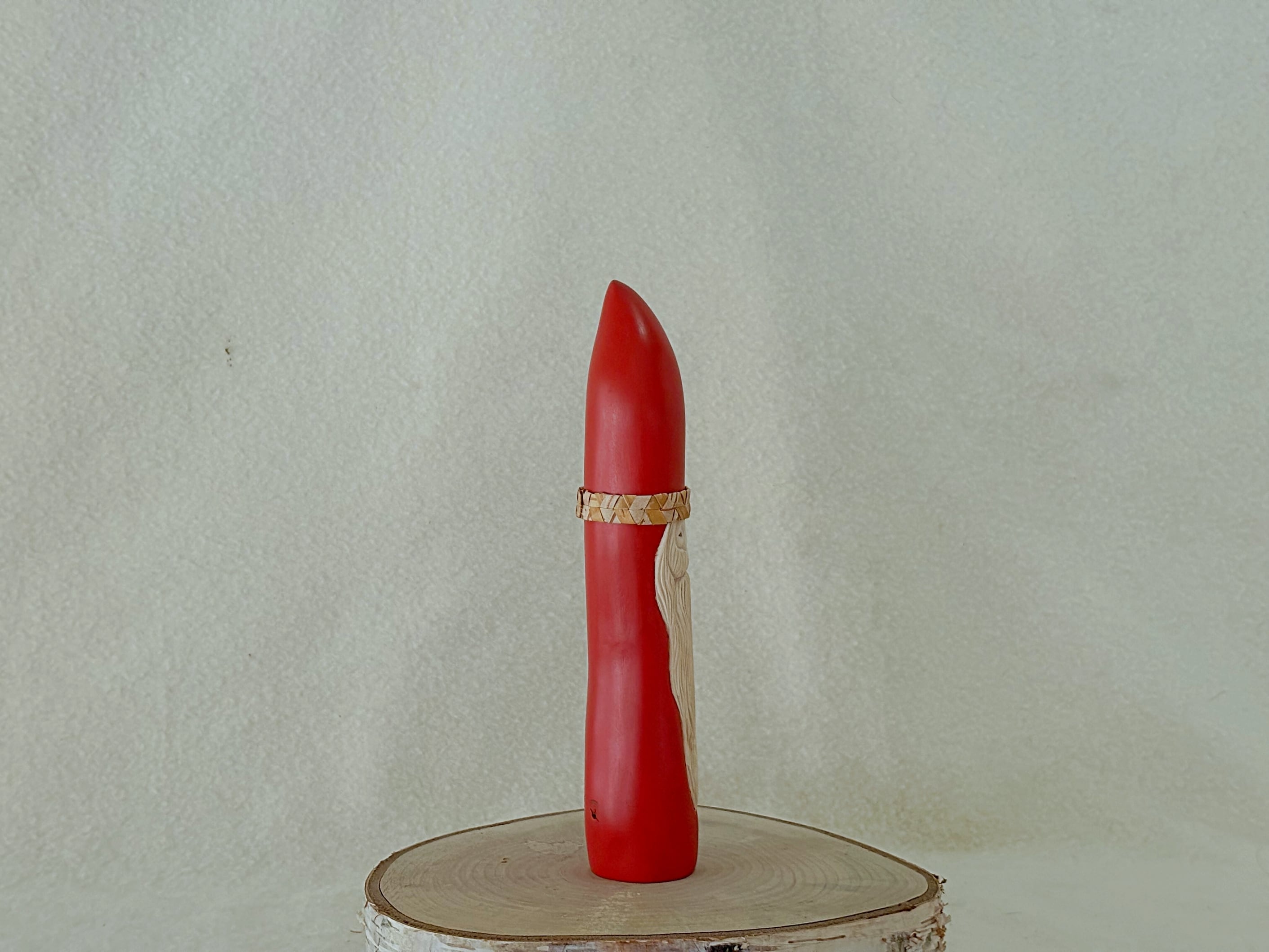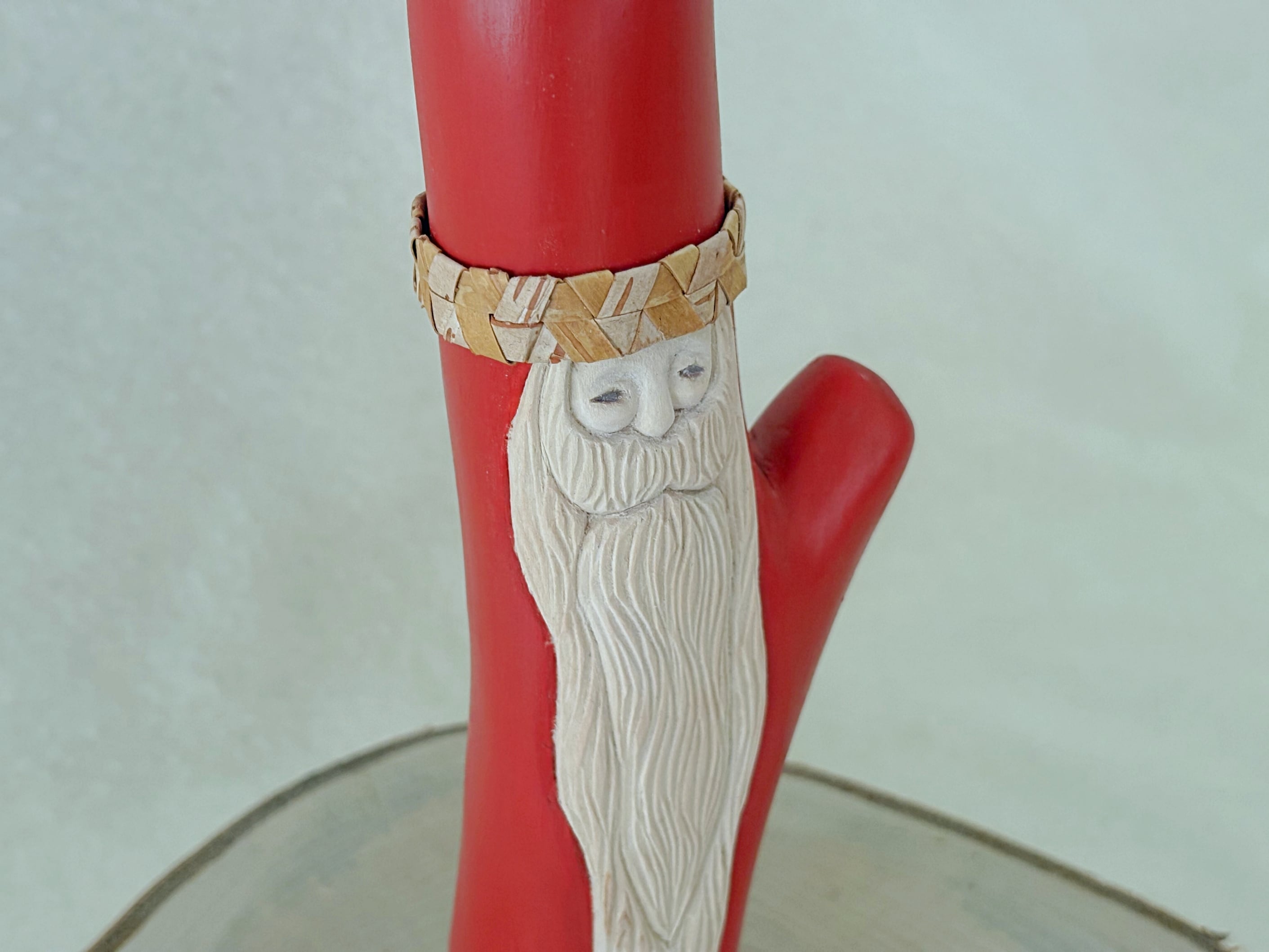 すべて手作業で彫刻し、天然の石を目に使うことで一体一体違う表情を持つサンタクロースです。