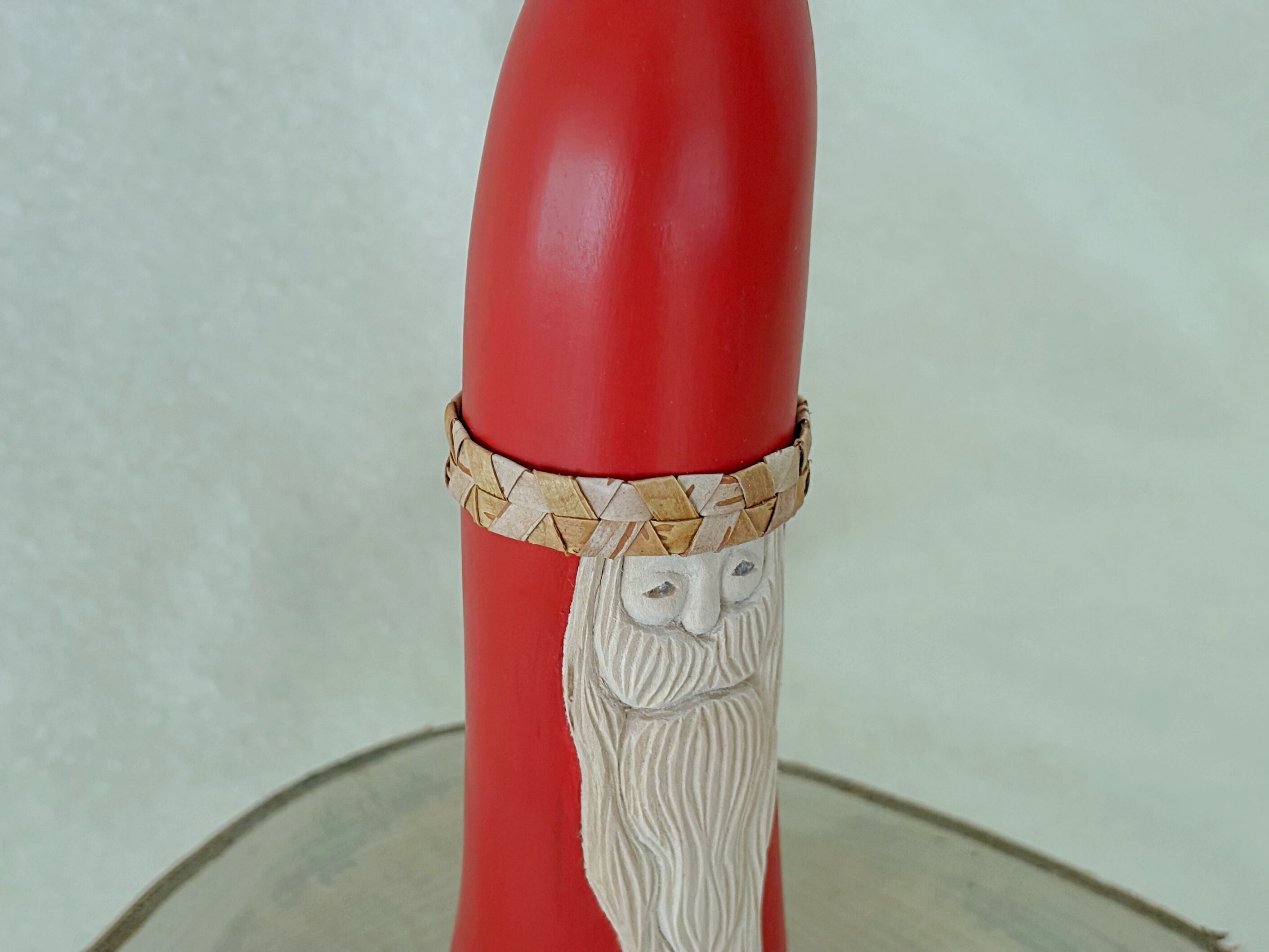 すべて手作業で彫刻し、天然の石を目に使うことで一体一体違う表情を持つサンタクロースです。