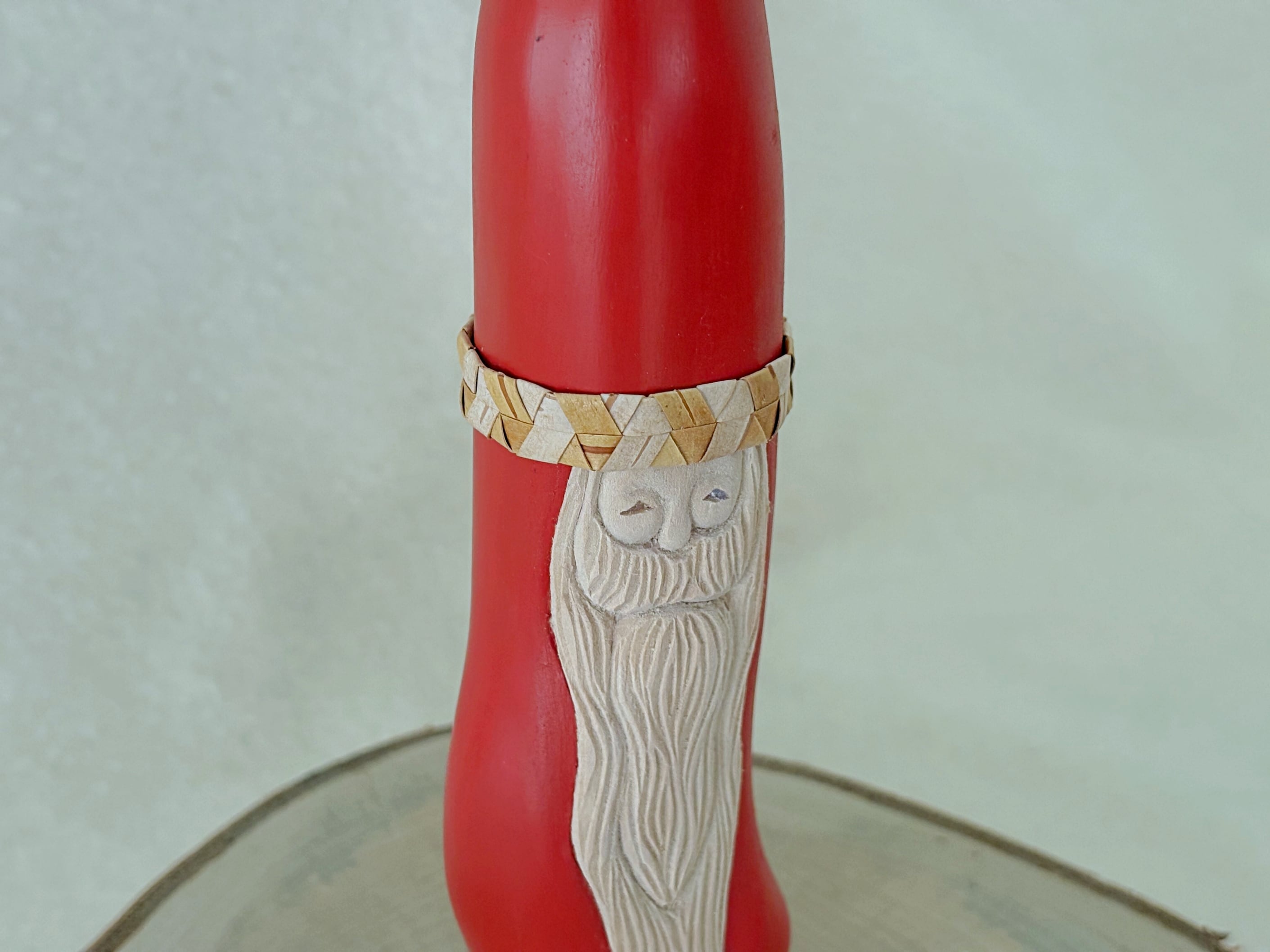 すべて手作業で彫刻し、天然の石を目に使うことで一体一体違う表情を持つサンタクロースです。