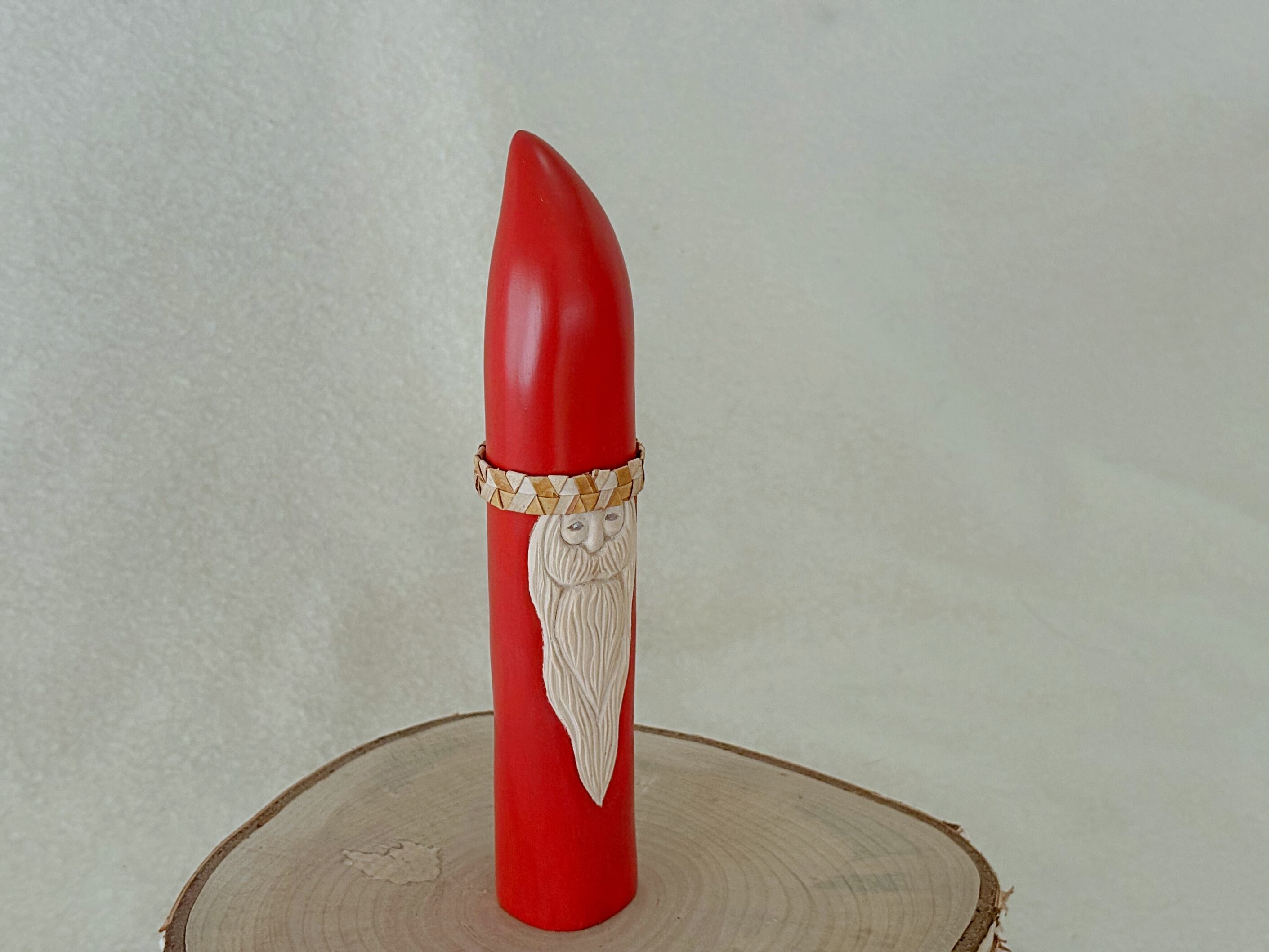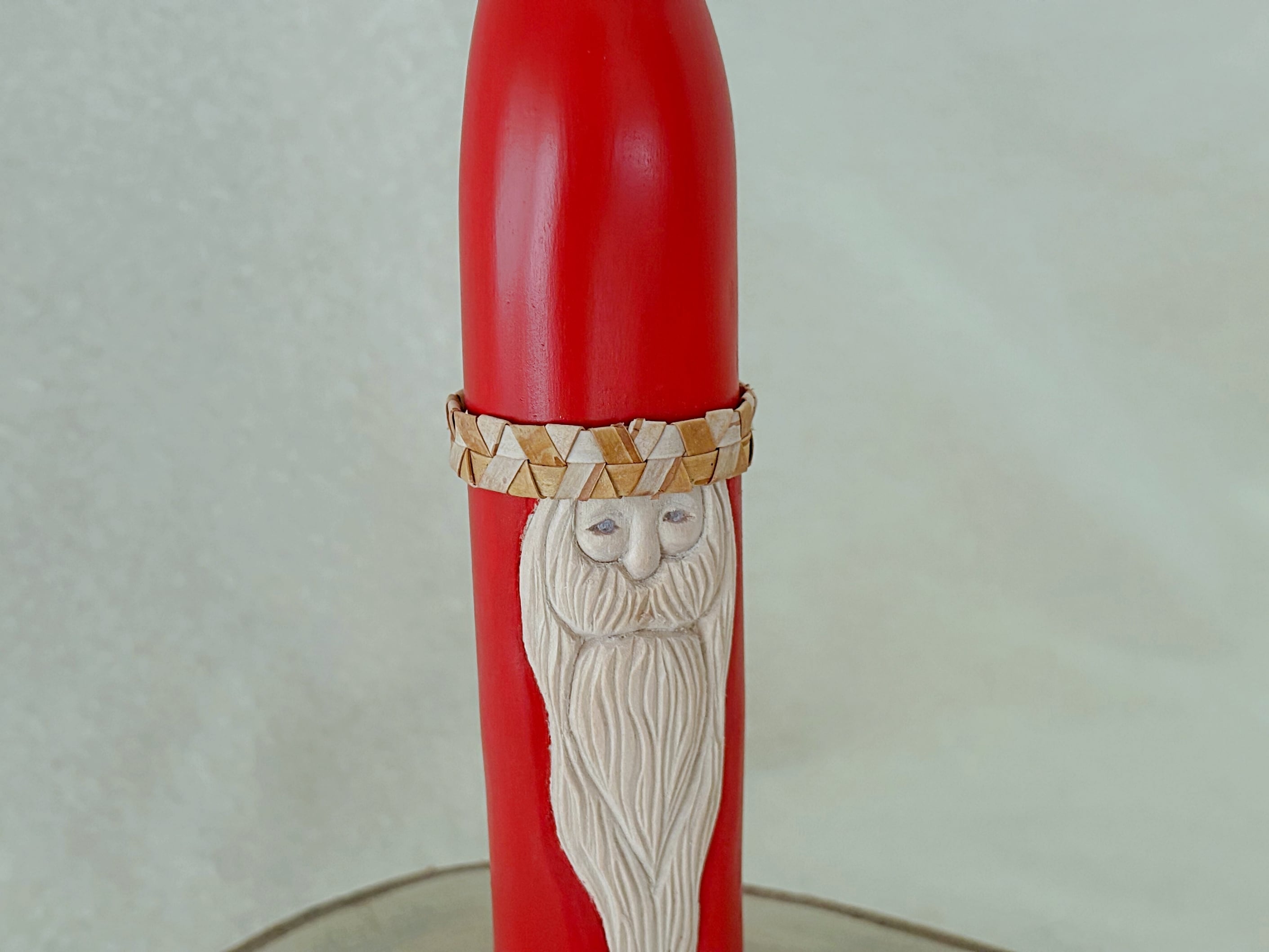すべて手作業で彫刻し、天然の石を目に使うことで一体一体違う表情を持つサンタクロースです。