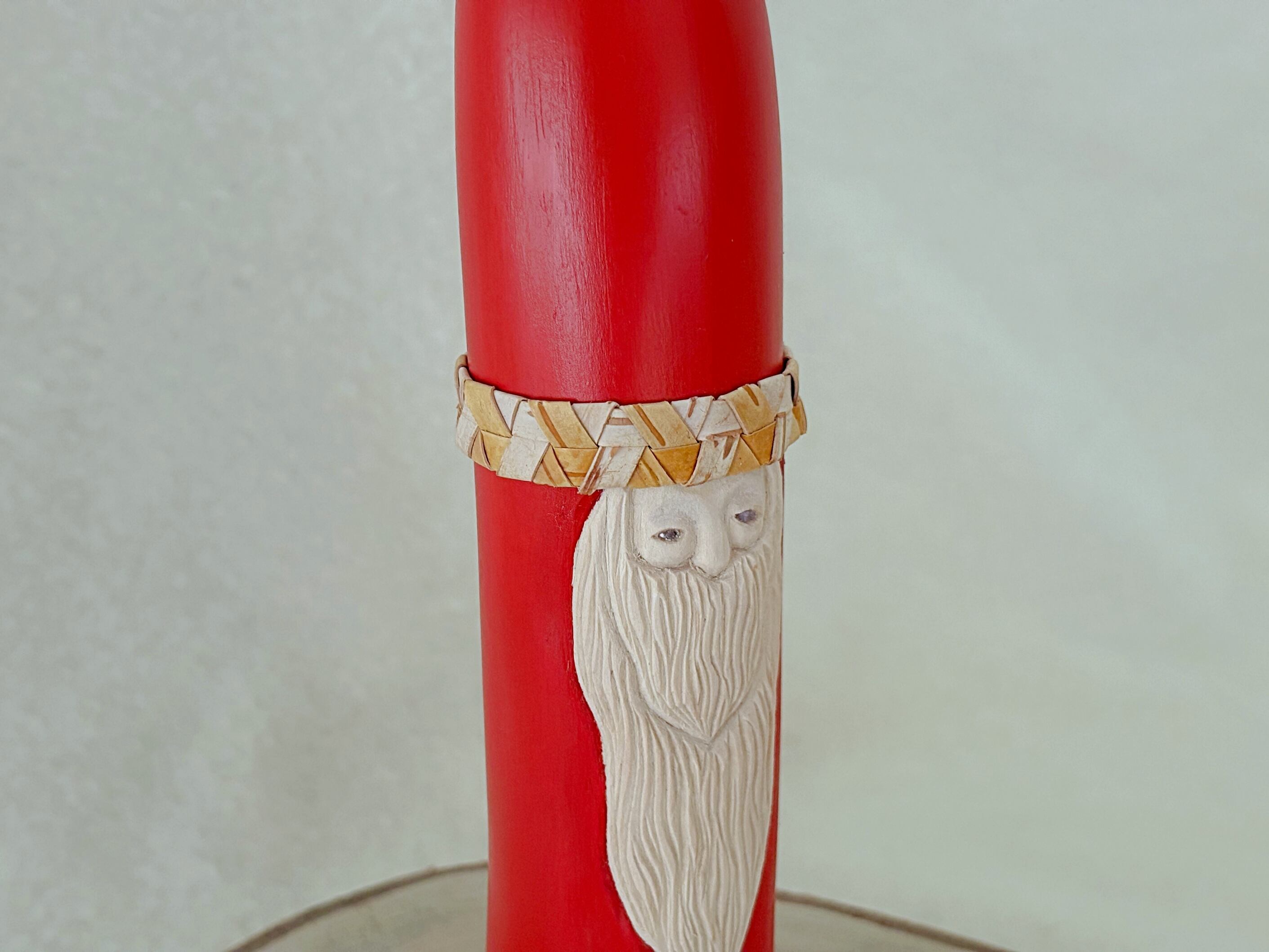 すべて手作業で彫刻し、天然の石を目に使うことで一体一体違う表情を持つサンタクロースです。