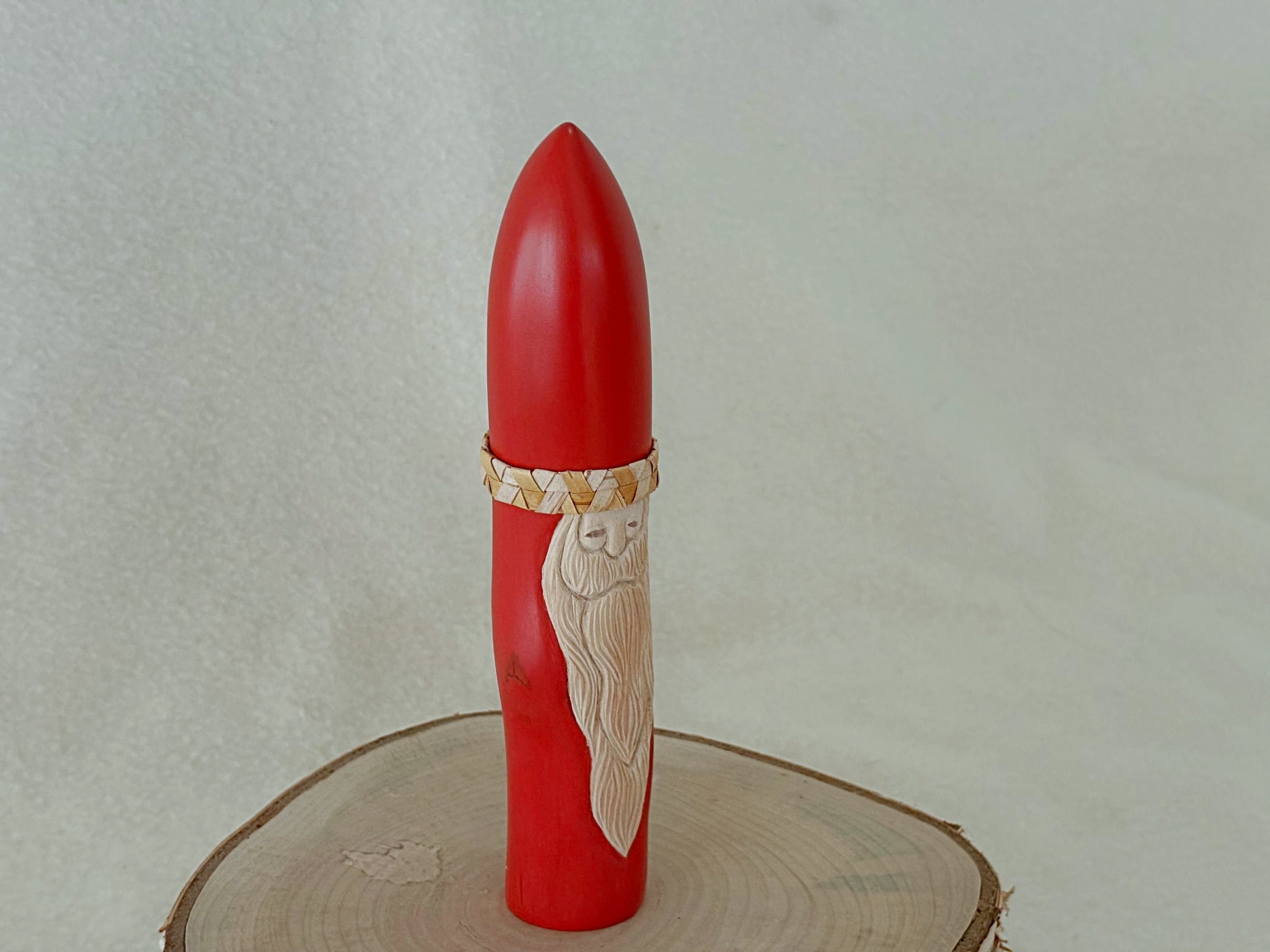 すべて手作業で彫刻し、天然の石を目に使うことで一体一体違う表情を持つサンタクロースです。