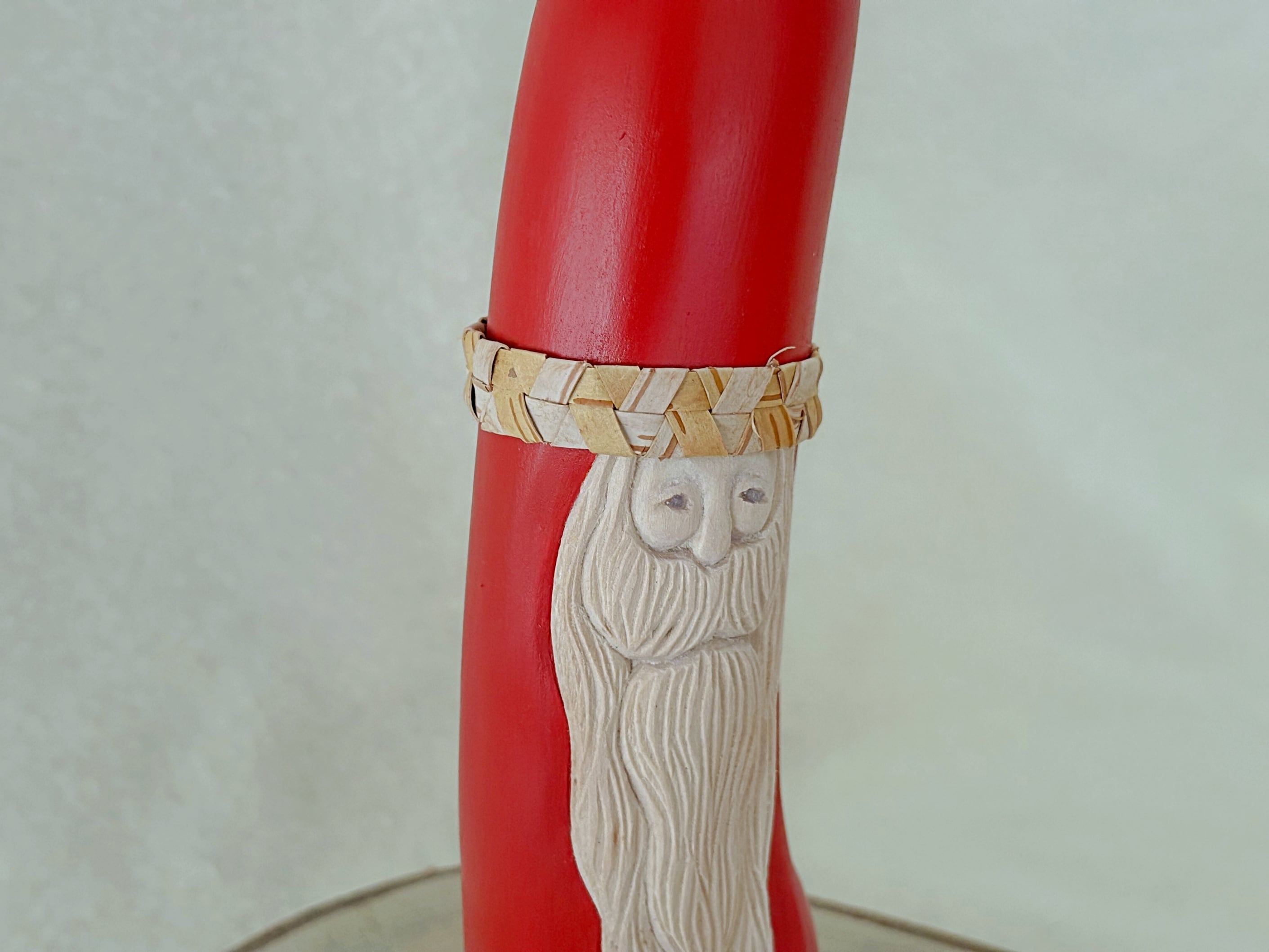 すべて手作業で彫刻し、天然の石を目に使うことで一体一体違う表情を持つサンタクロースです。