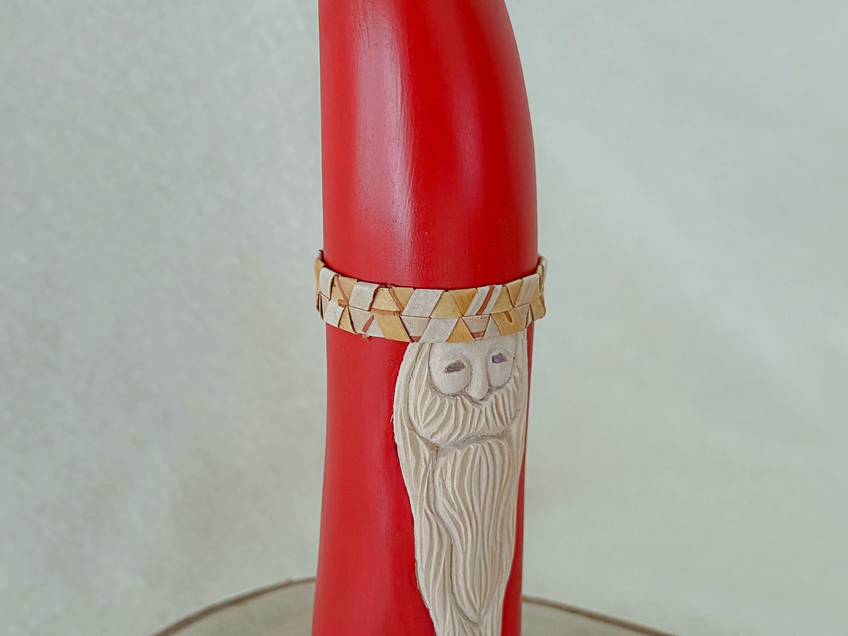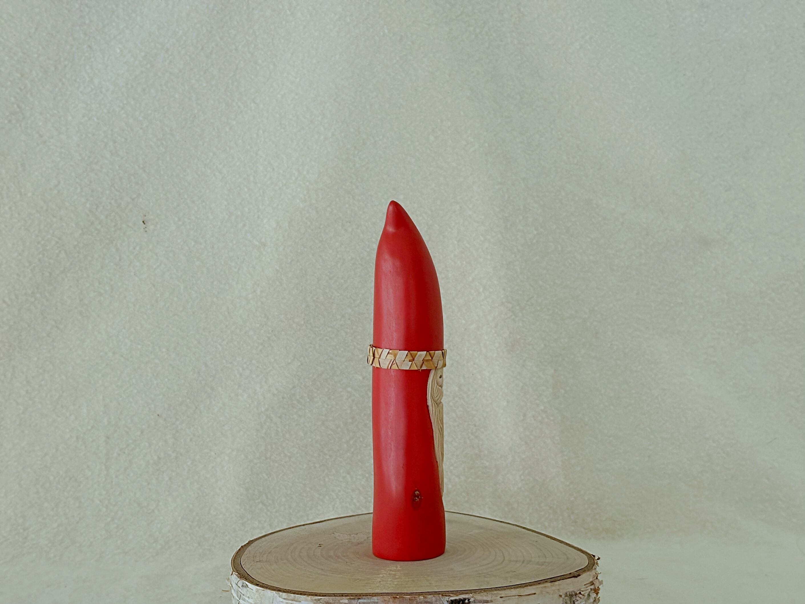 すべて手作業で彫刻し、天然の石を目に使うことで一体一体違う表情を持つサンタクロースです。