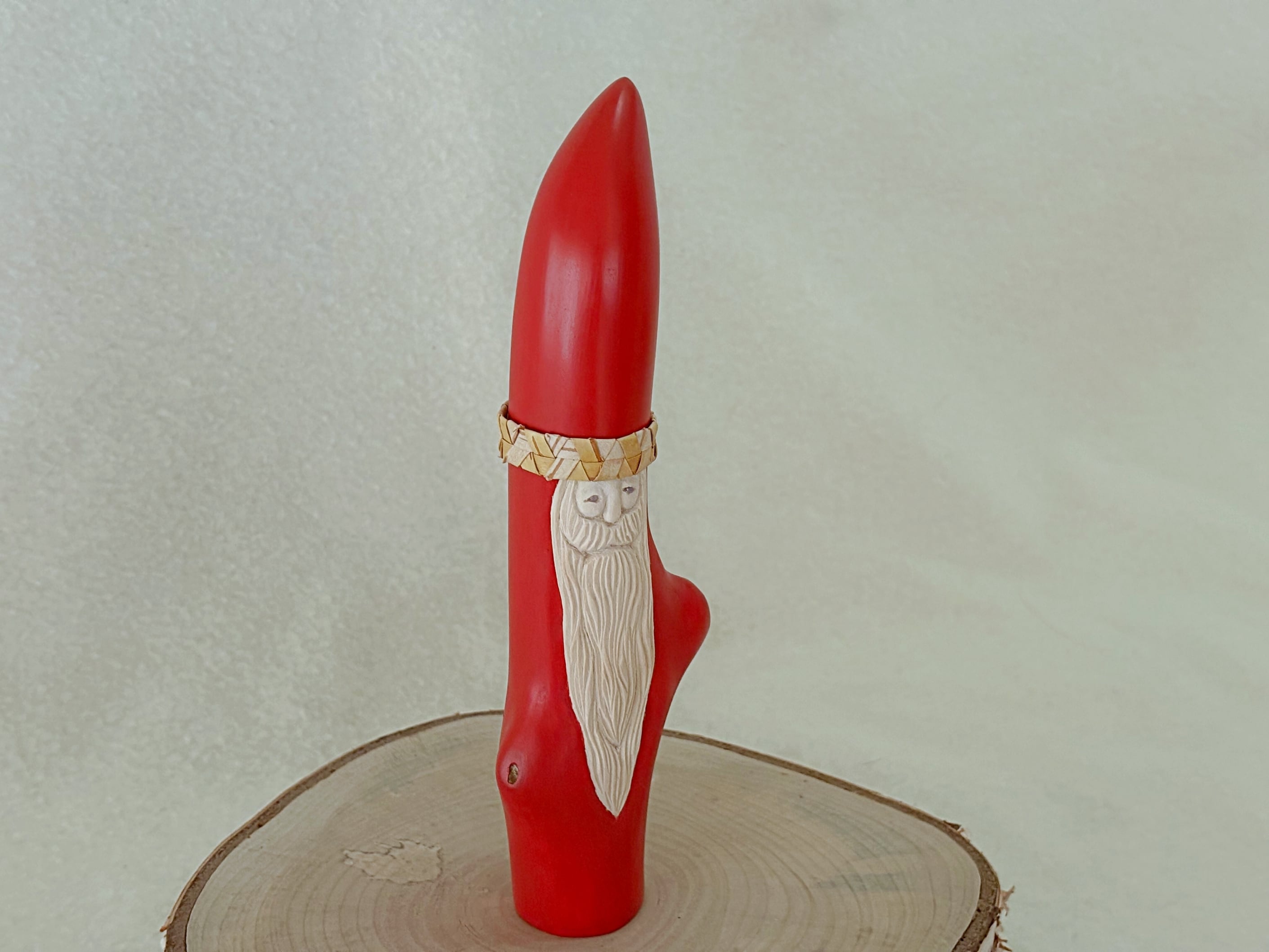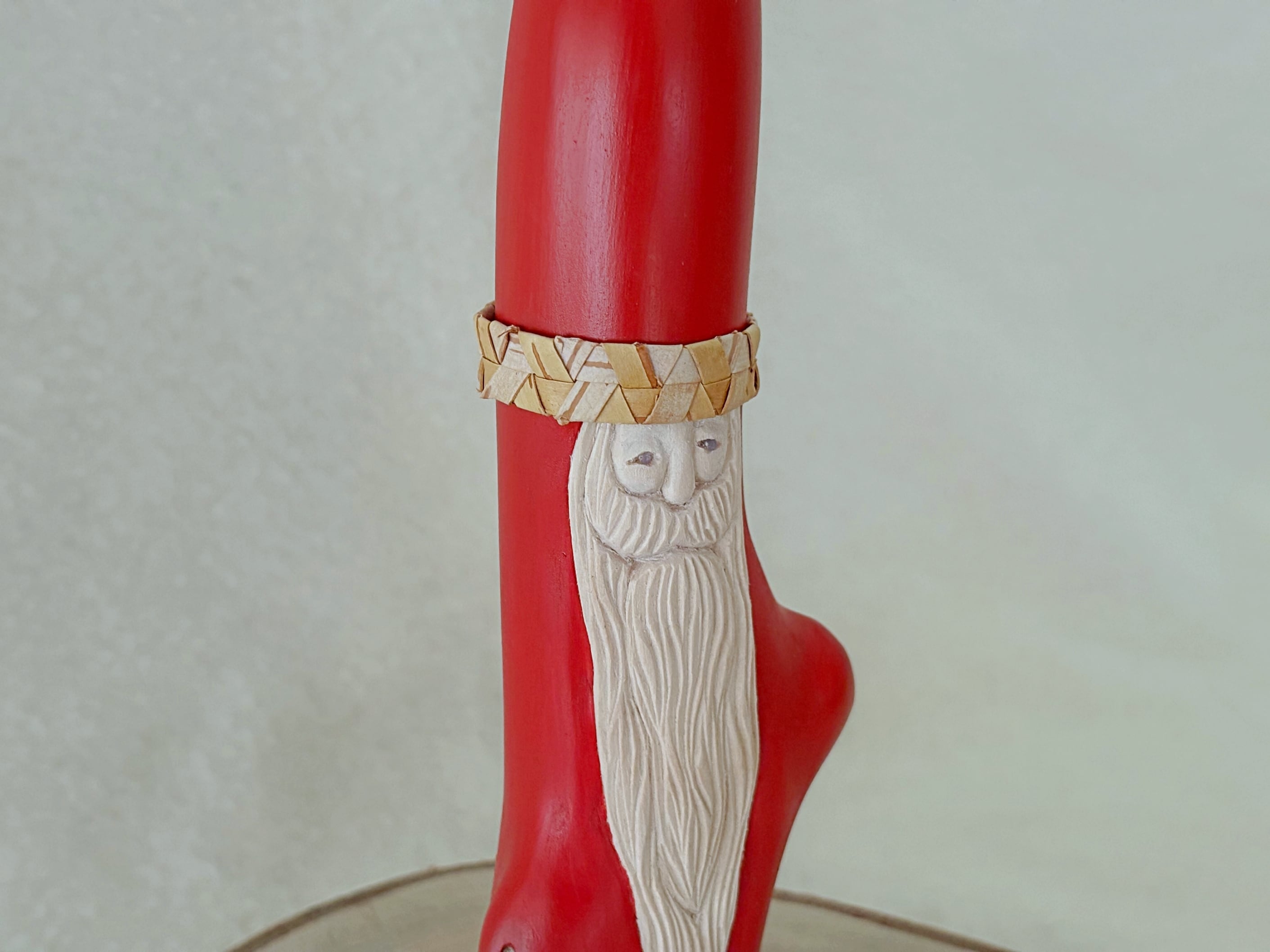 すべて手作業で彫刻し、天然の石を目に使うことで一体一体違う表情を持つサンタクロースです。