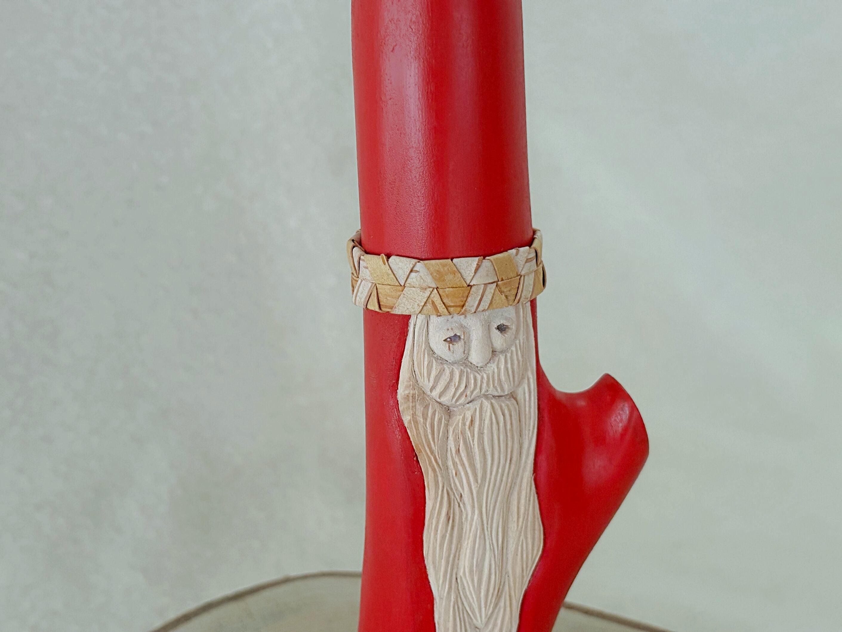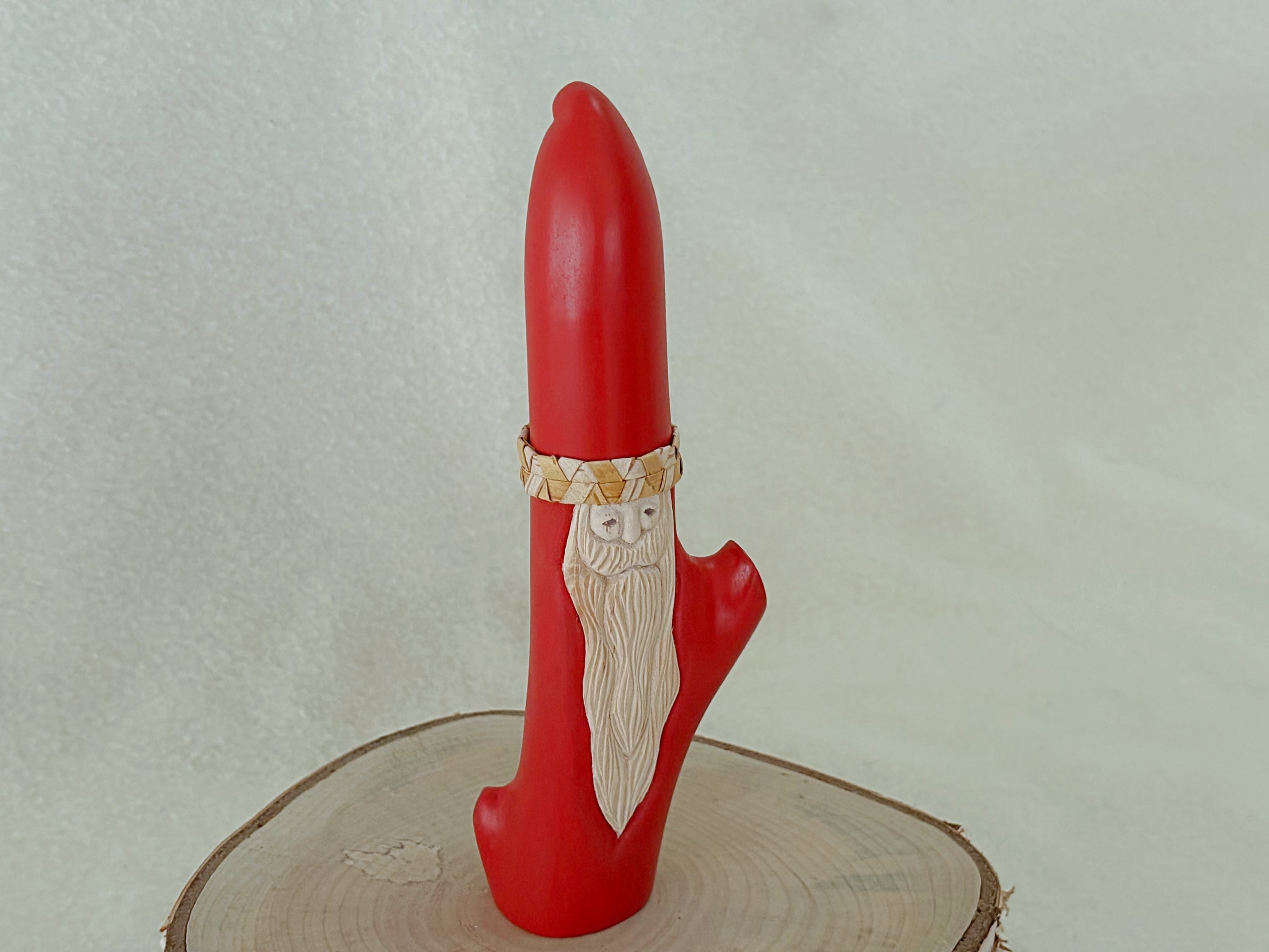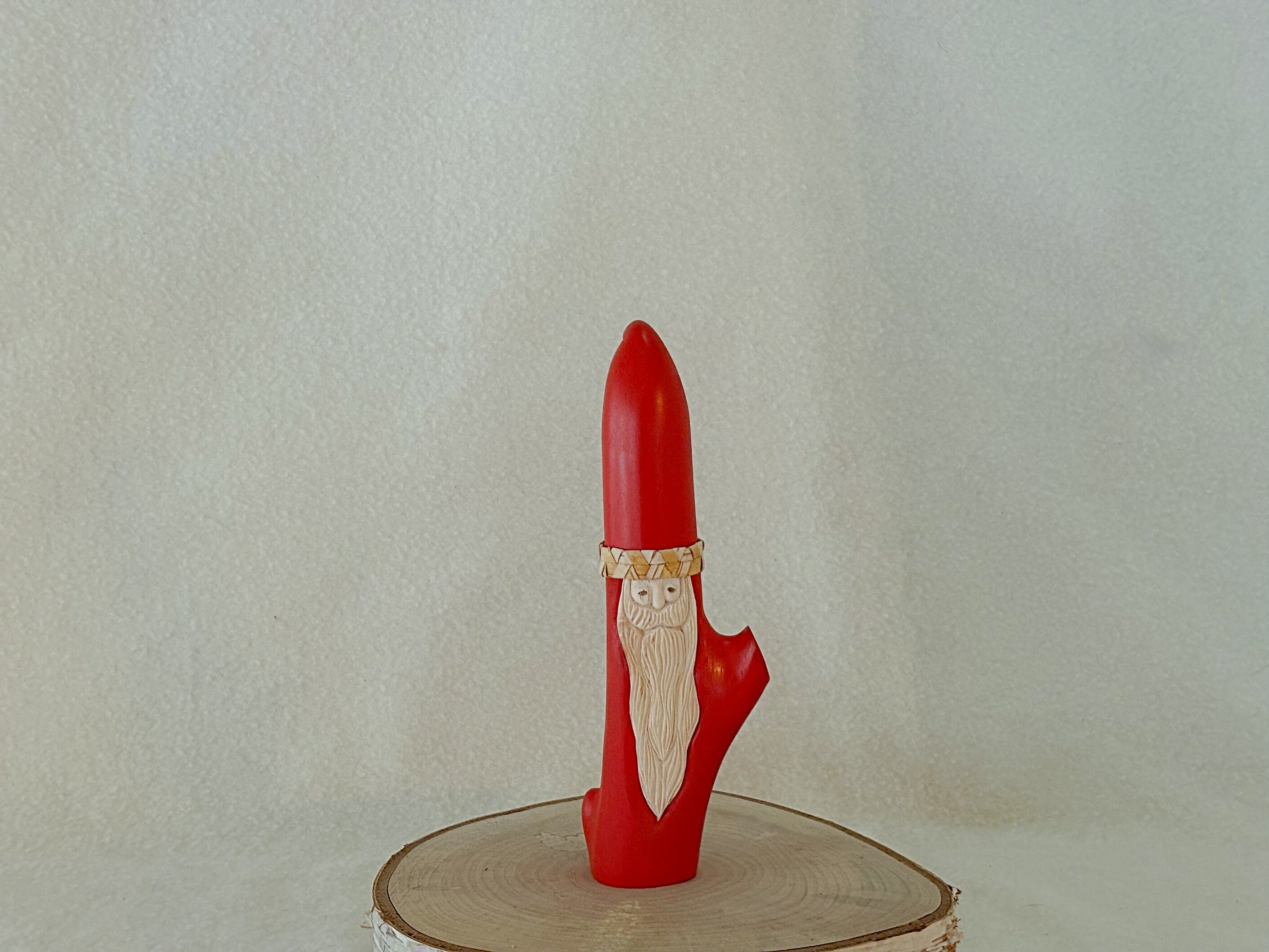 すべて手作業で彫刻し、天然の石を目に使うことで一体一体違う表情を持つサンタクロースです。