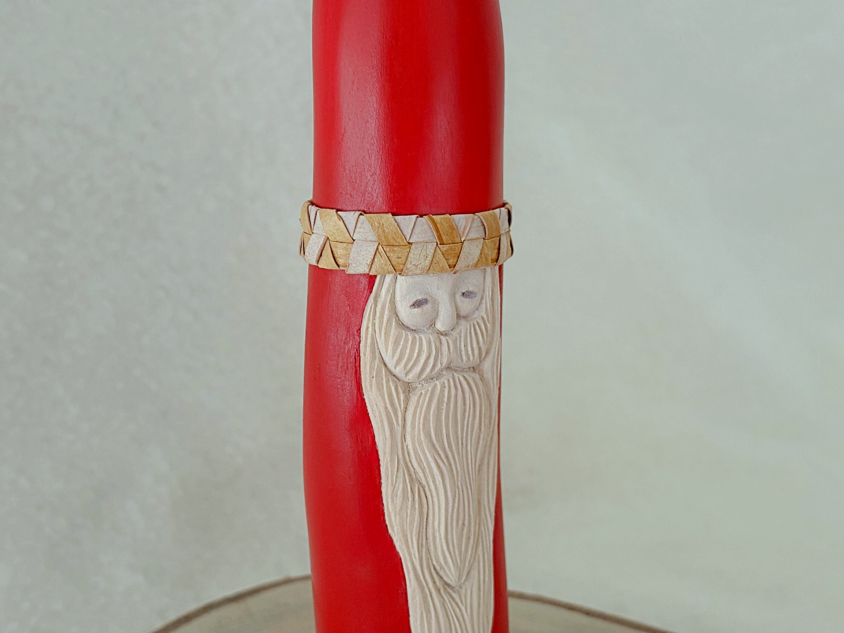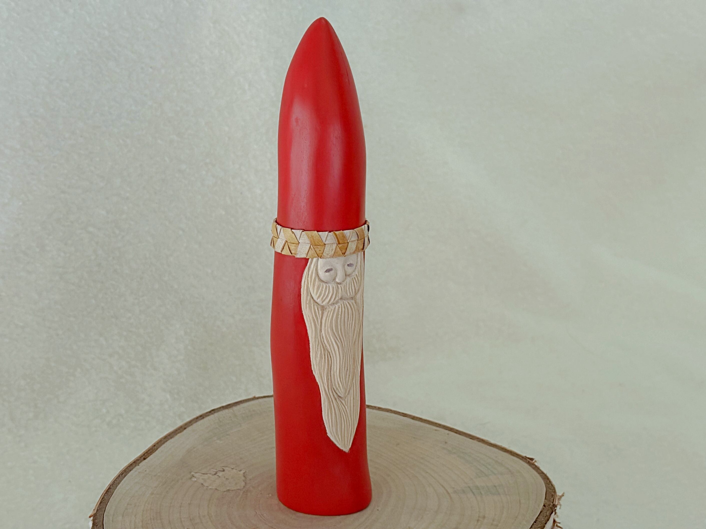 すべて手作業で彫刻し、天然の石を目に使うことで一体一体違う表情を持つサンタクロースです。