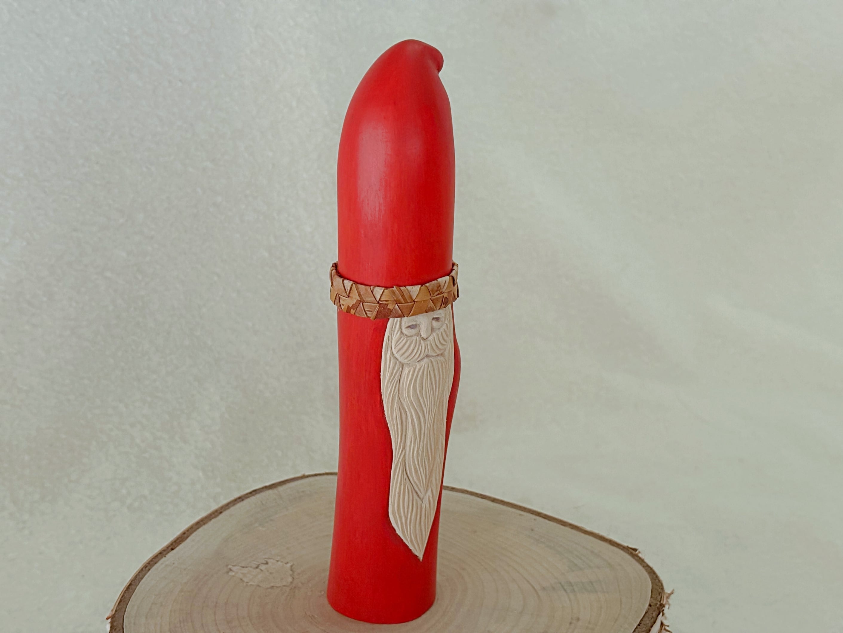 すべて手作業で彫刻し、天然の石を目に使うことで一体一体違う表情を持つサンタクロースです。