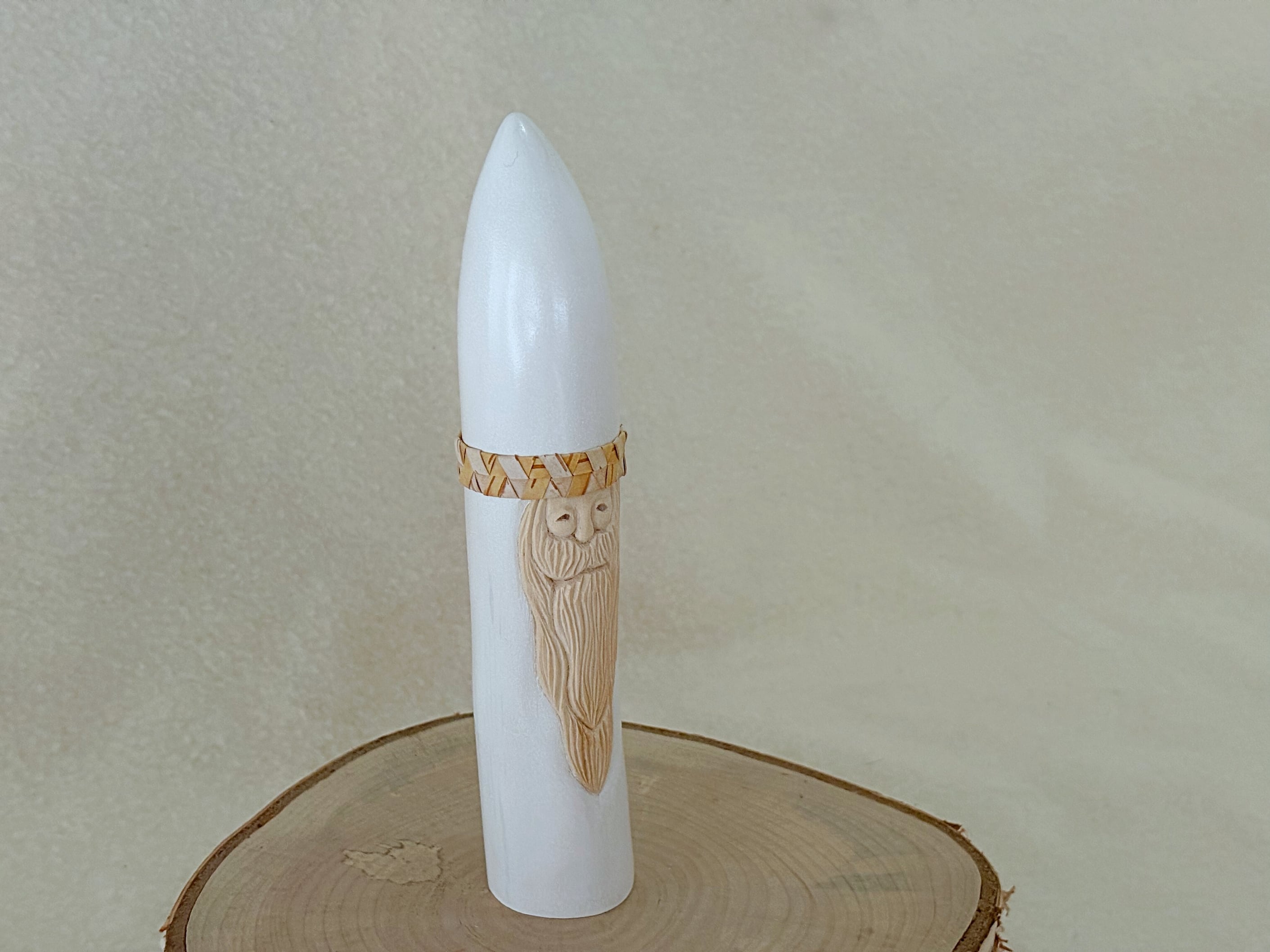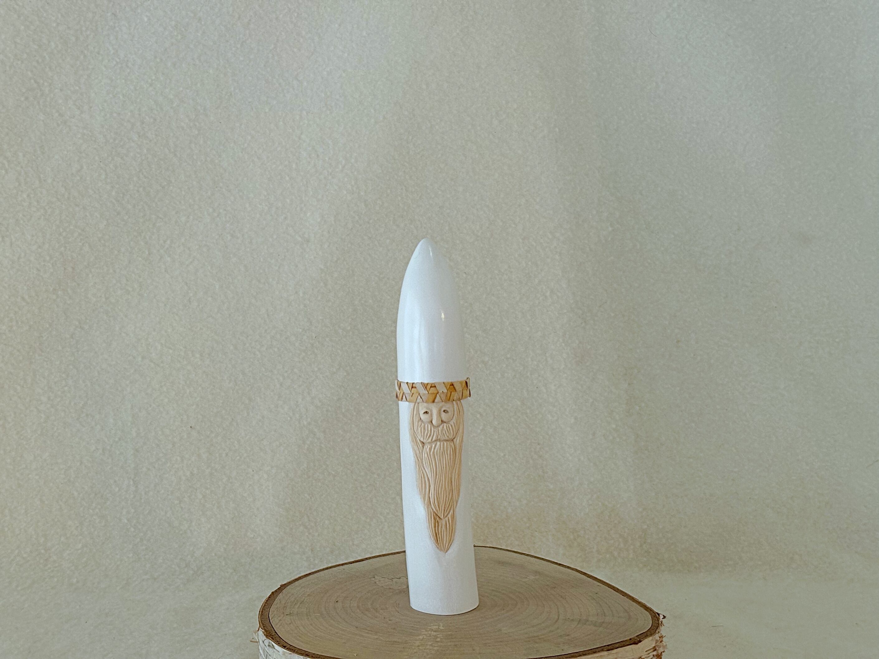 すべて手作業で彫刻し、天然の石を目に使うことで一体一体違う表情を持つサンタクロースです。