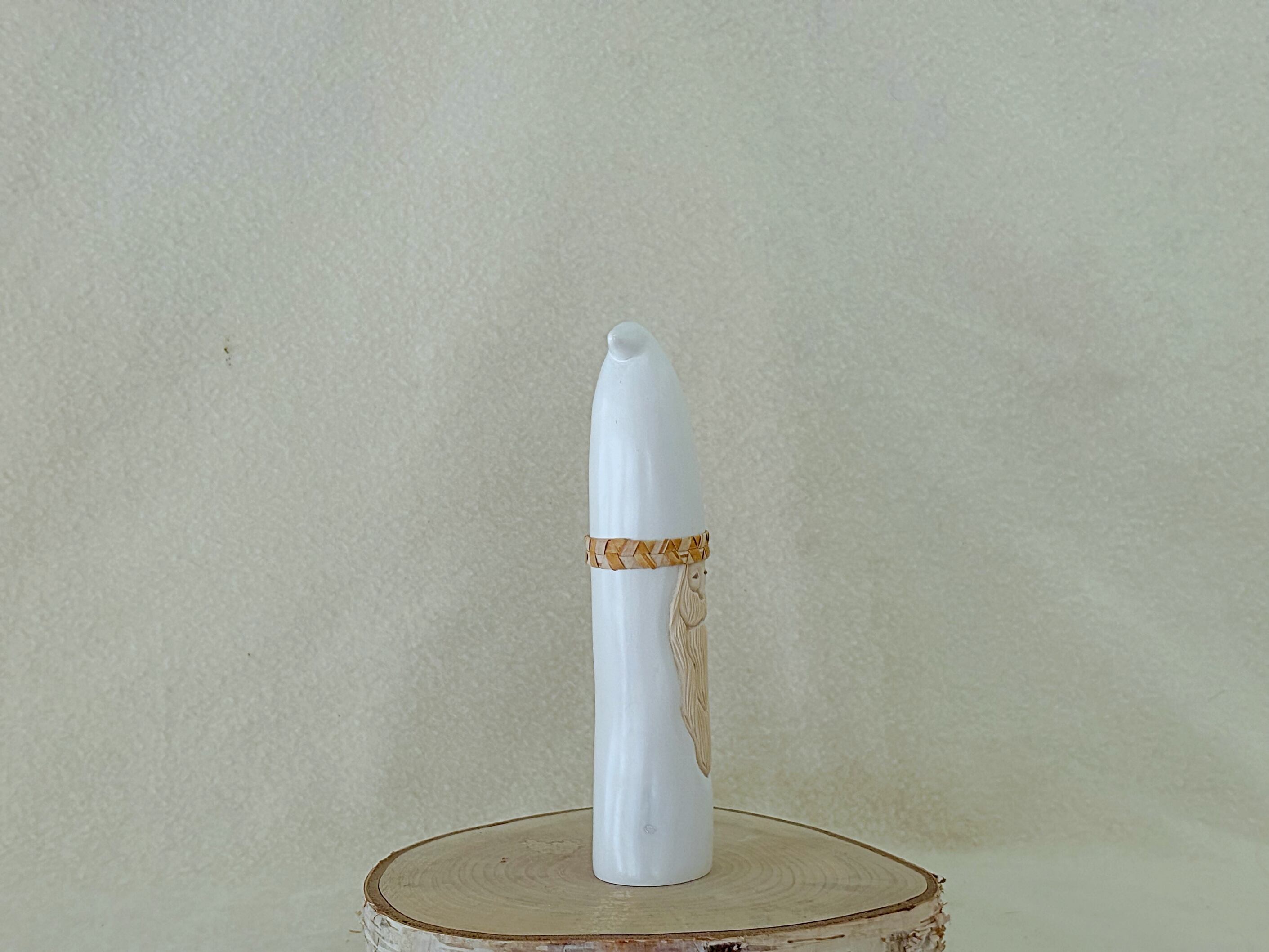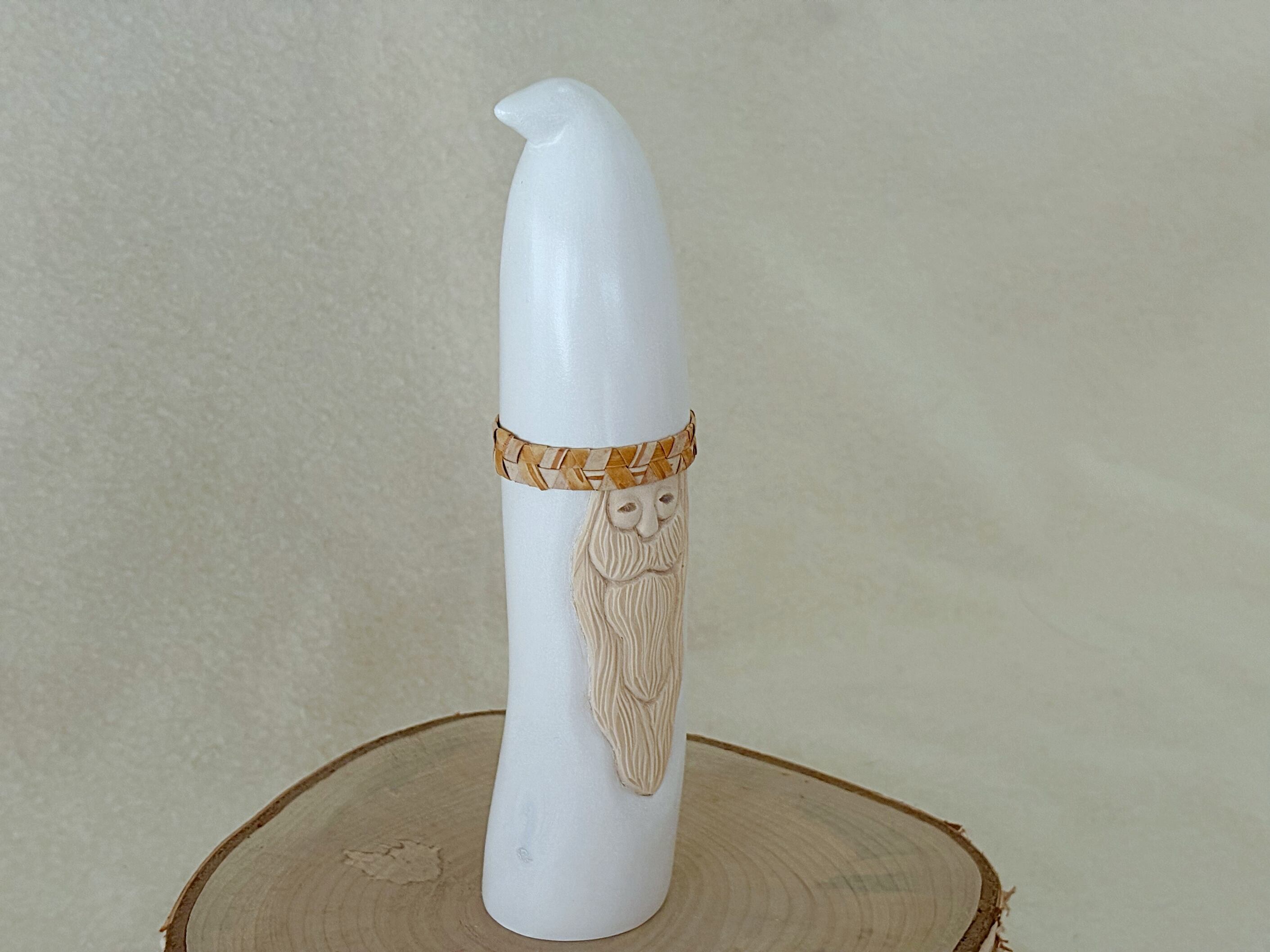 すべて手作業で彫刻し、天然の石を目に使うことで一体一体違う表情を持つサンタクロースです。