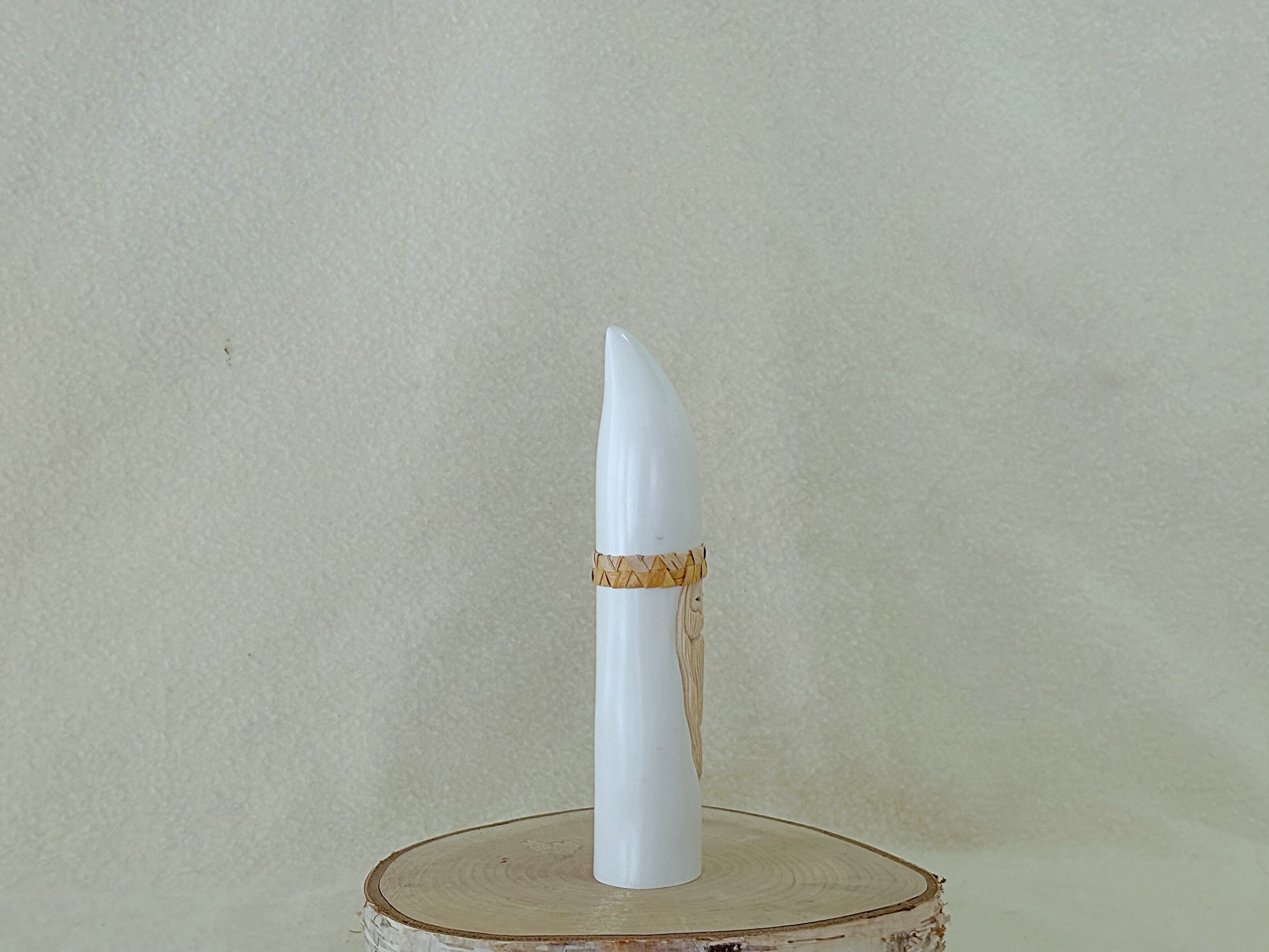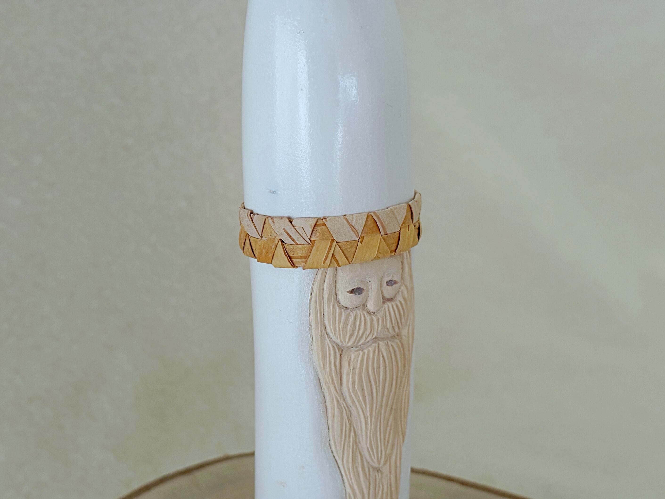 すべて手作業で彫刻し、天然の石を目に使うことで一体一体違う表情を持つサンタクロースです。
