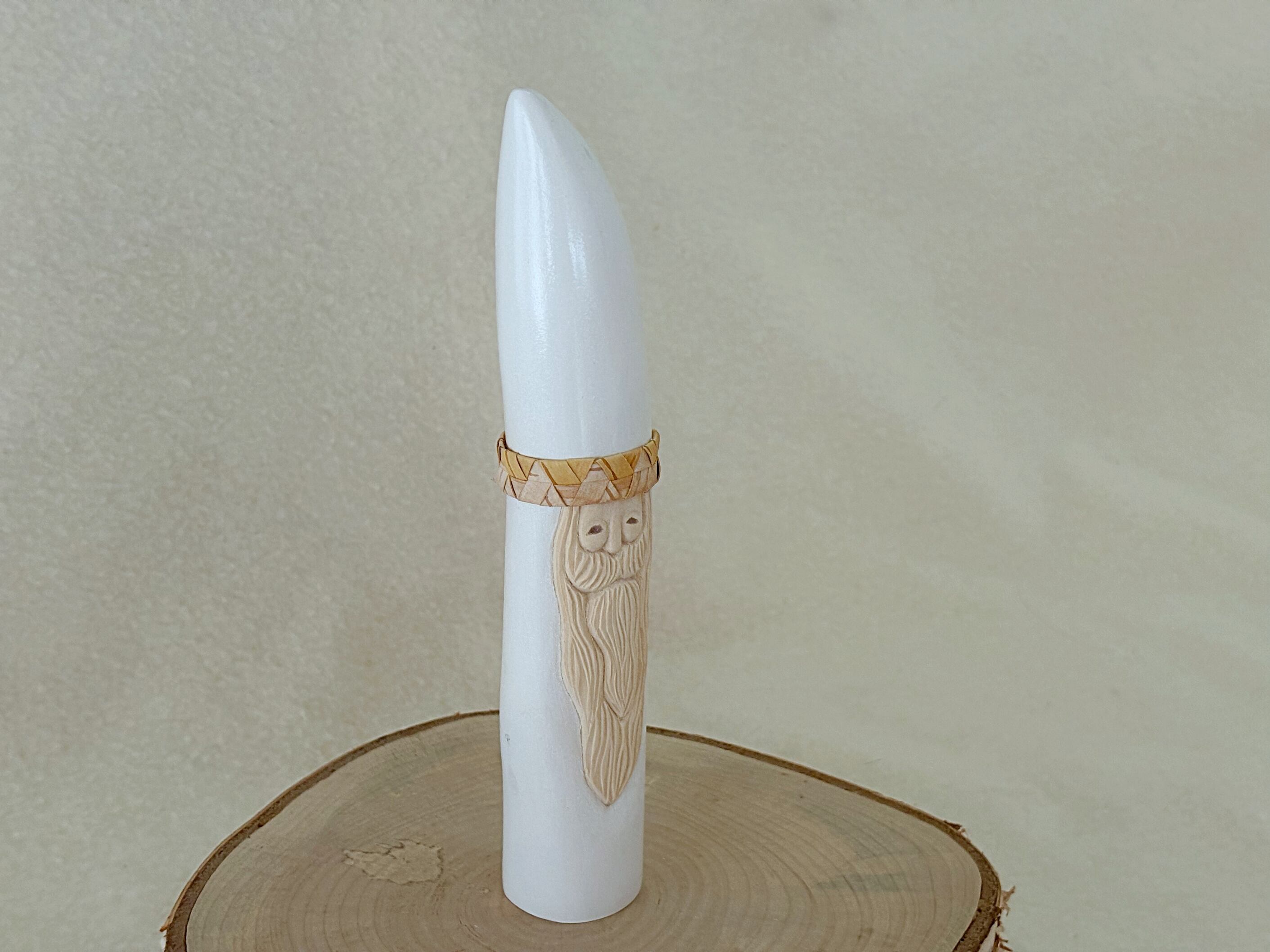 すべて手作業で彫刻し、天然の石を目に使うことで一体一体違う表情を持つサンタクロースです。