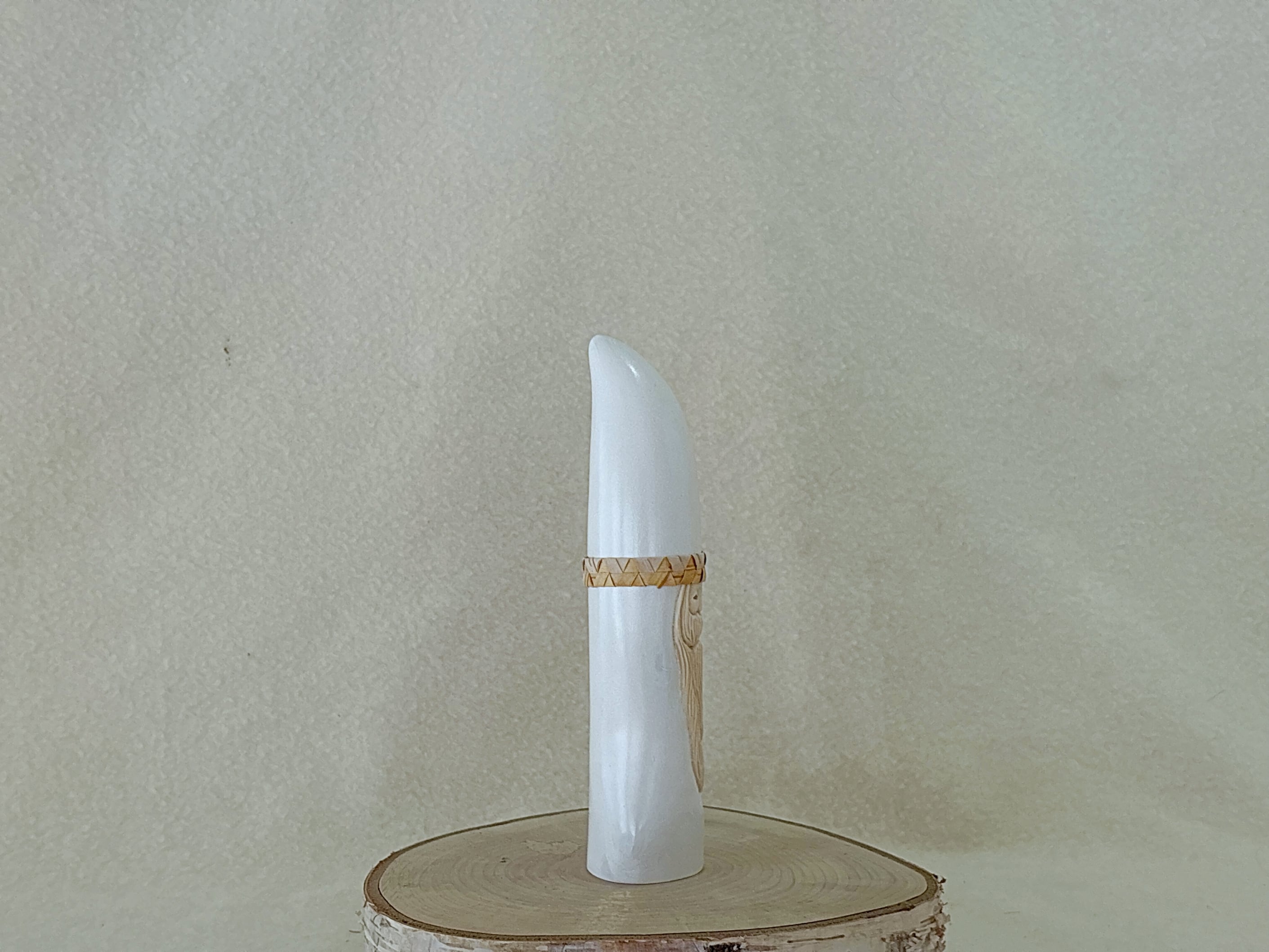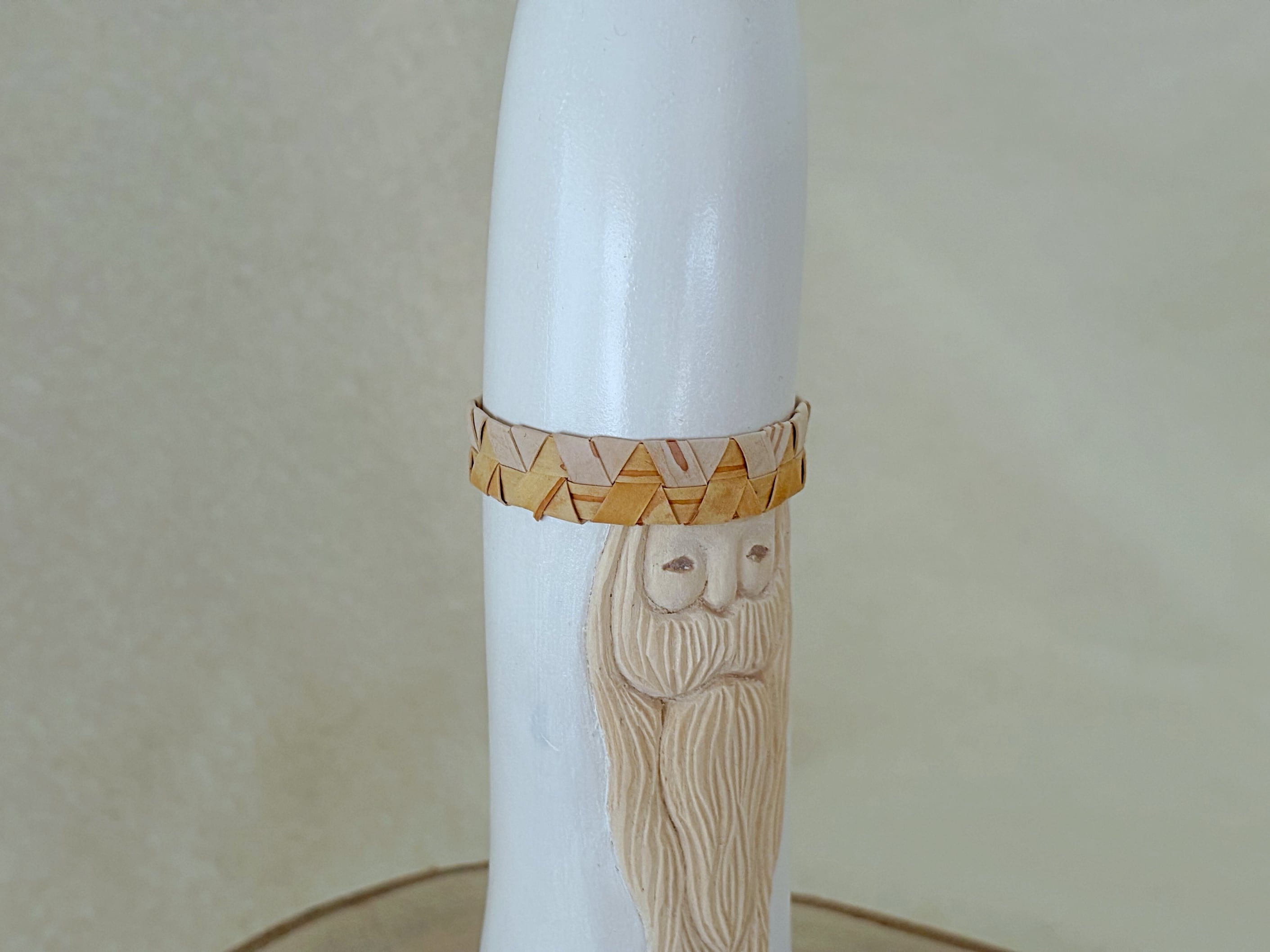 すべて手作業で彫刻し、天然の石を目に使うことで一体一体違う表情を持つサンタクロースです。