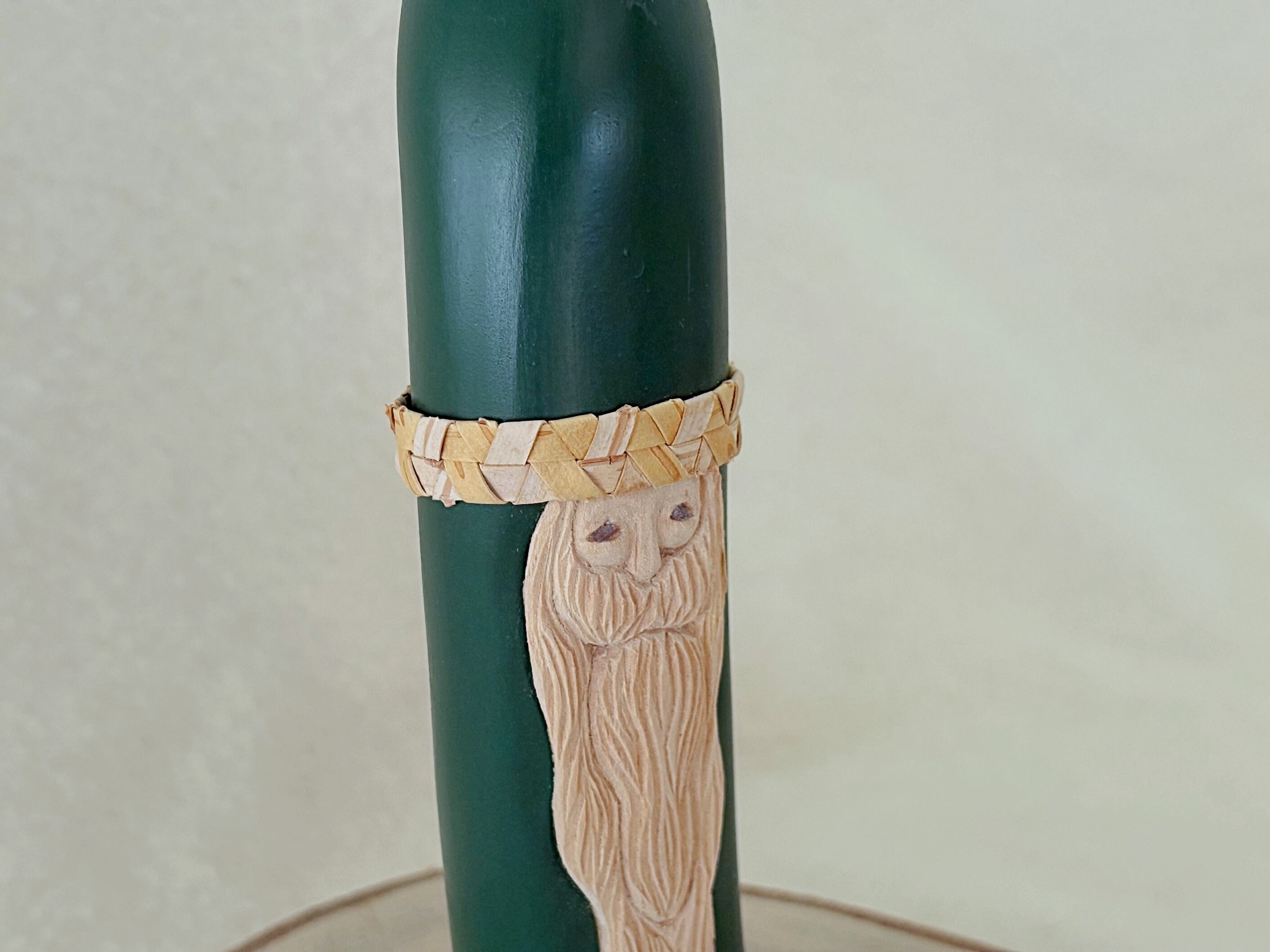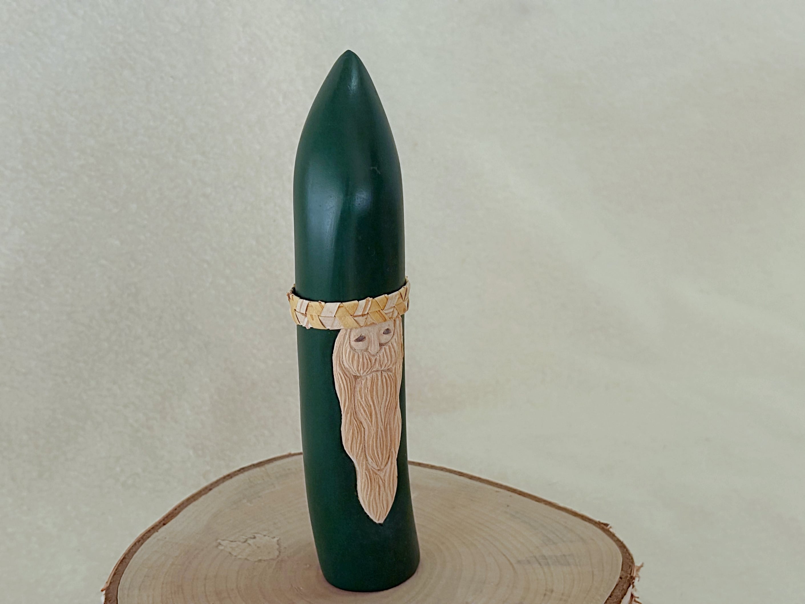 すべて手作業で彫刻し、天然の石を目に使うことで一体一体違う表情を持つサンタクロースです。