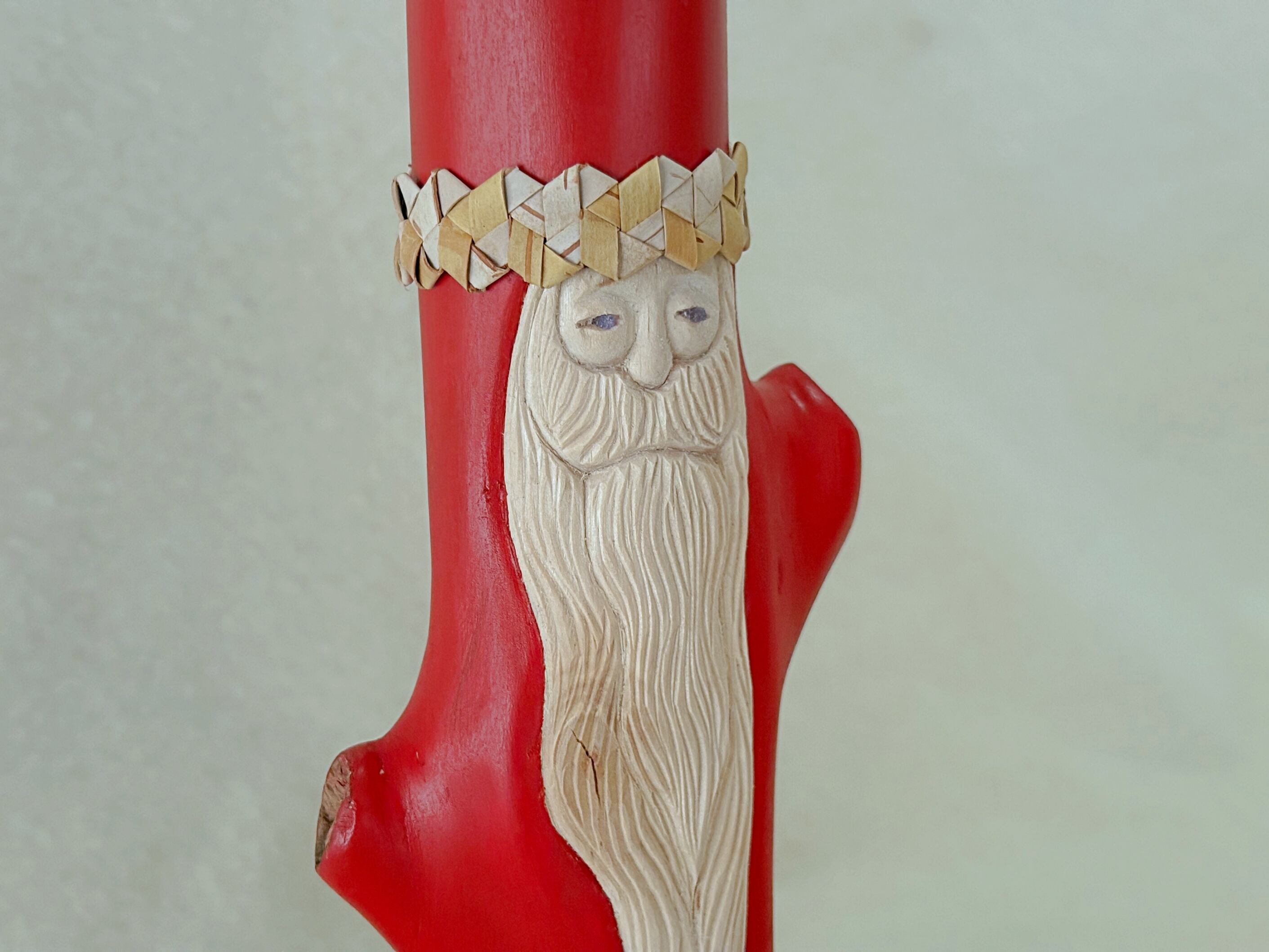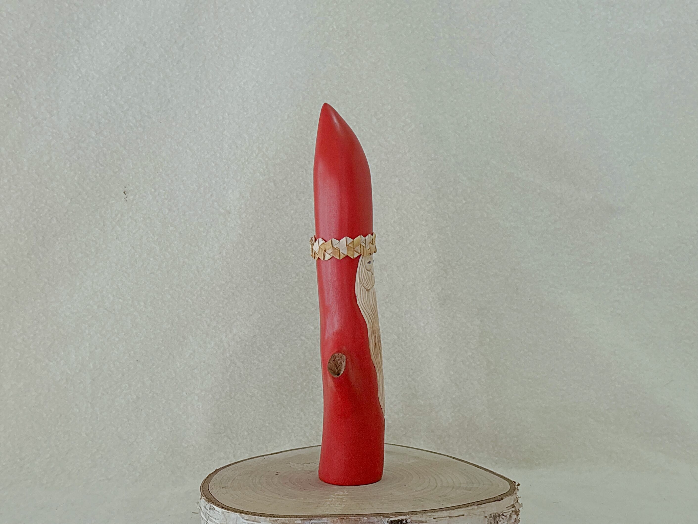 すべて手作業で彫刻し、天然の石を目に使うことで一体一体違う表情を持つサンタクロースです。