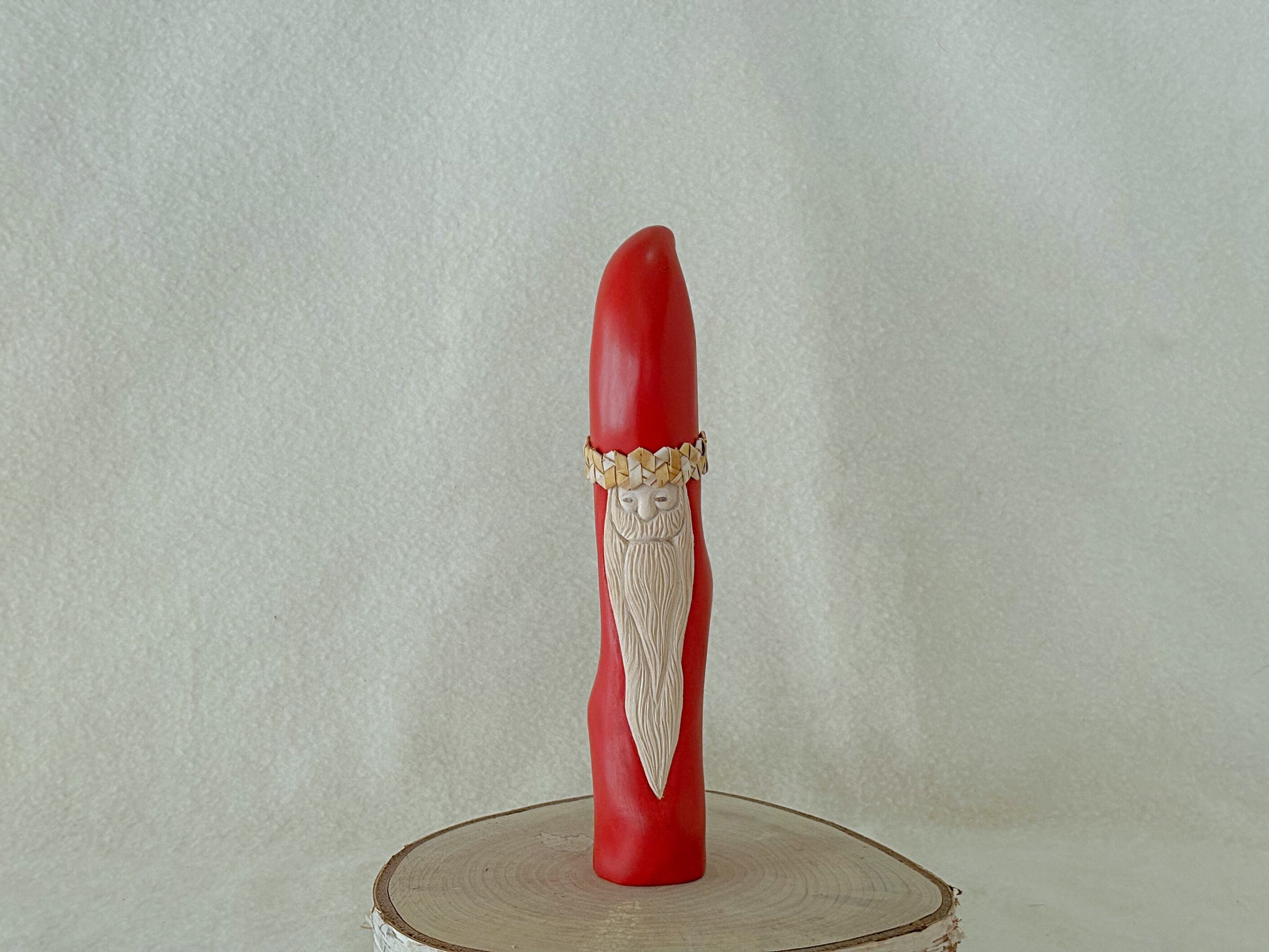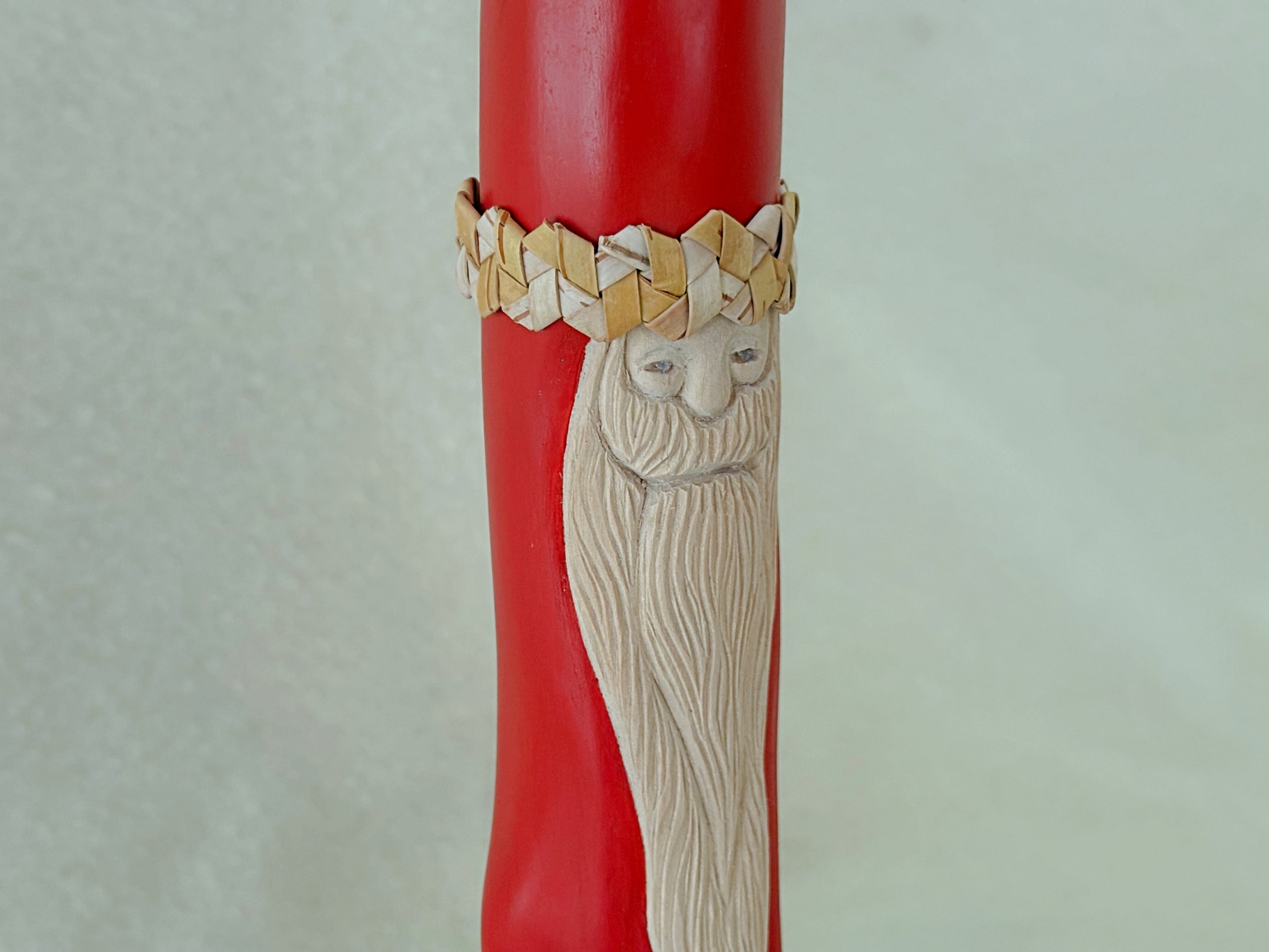 すべて手作業で彫刻し、天然の石を目に使うことで一体一体違う表情を持つサンタクロースです。
