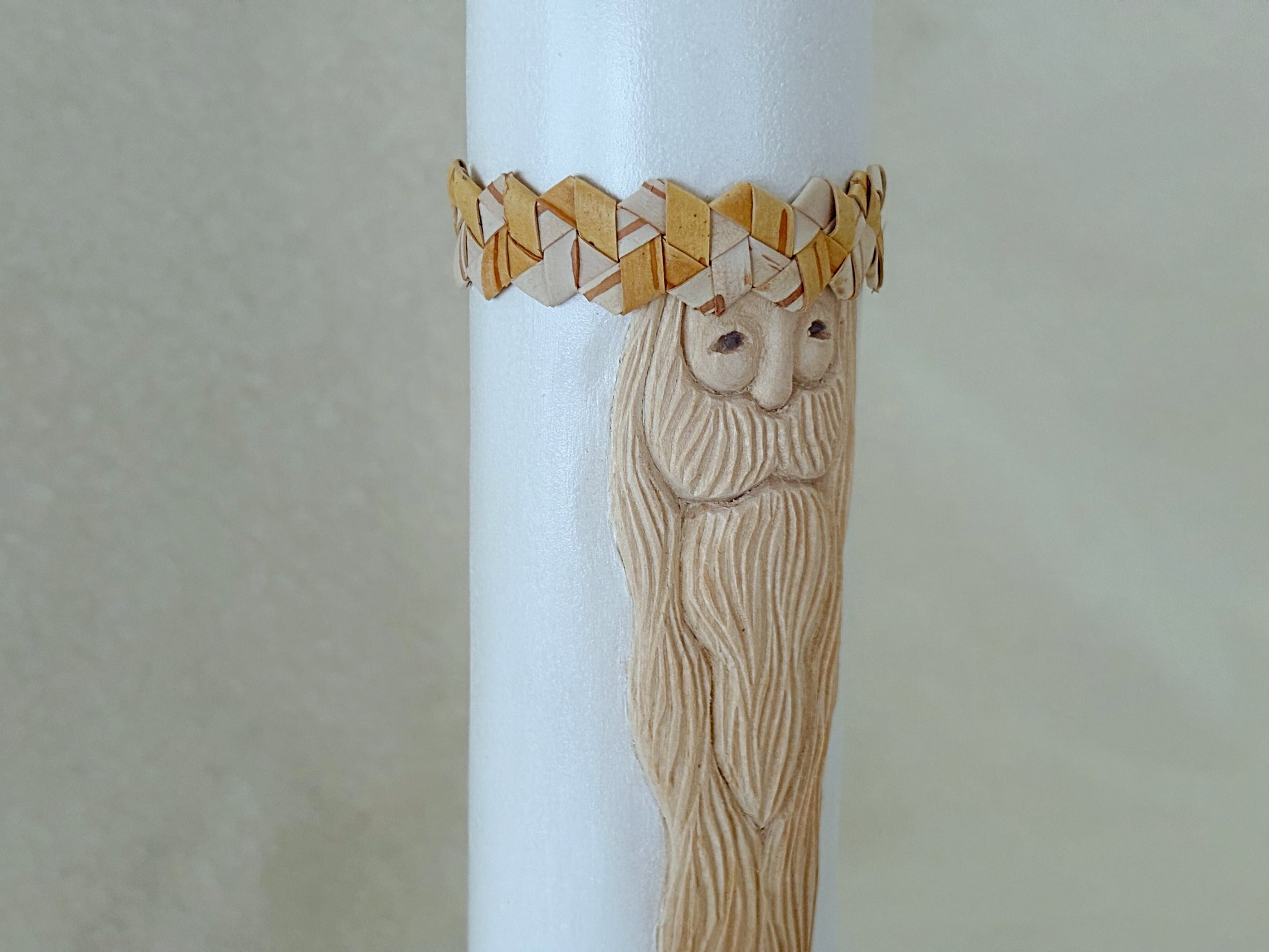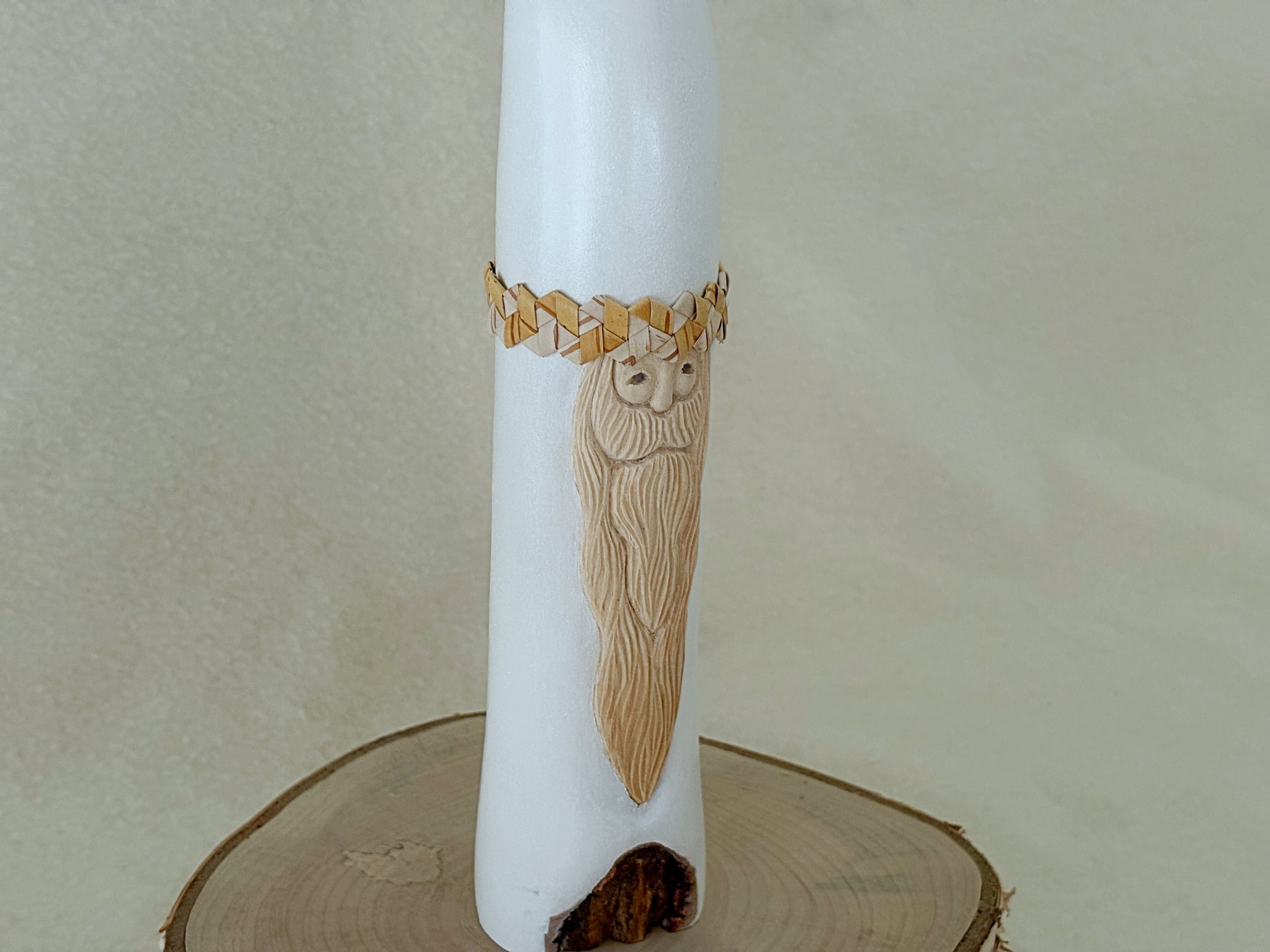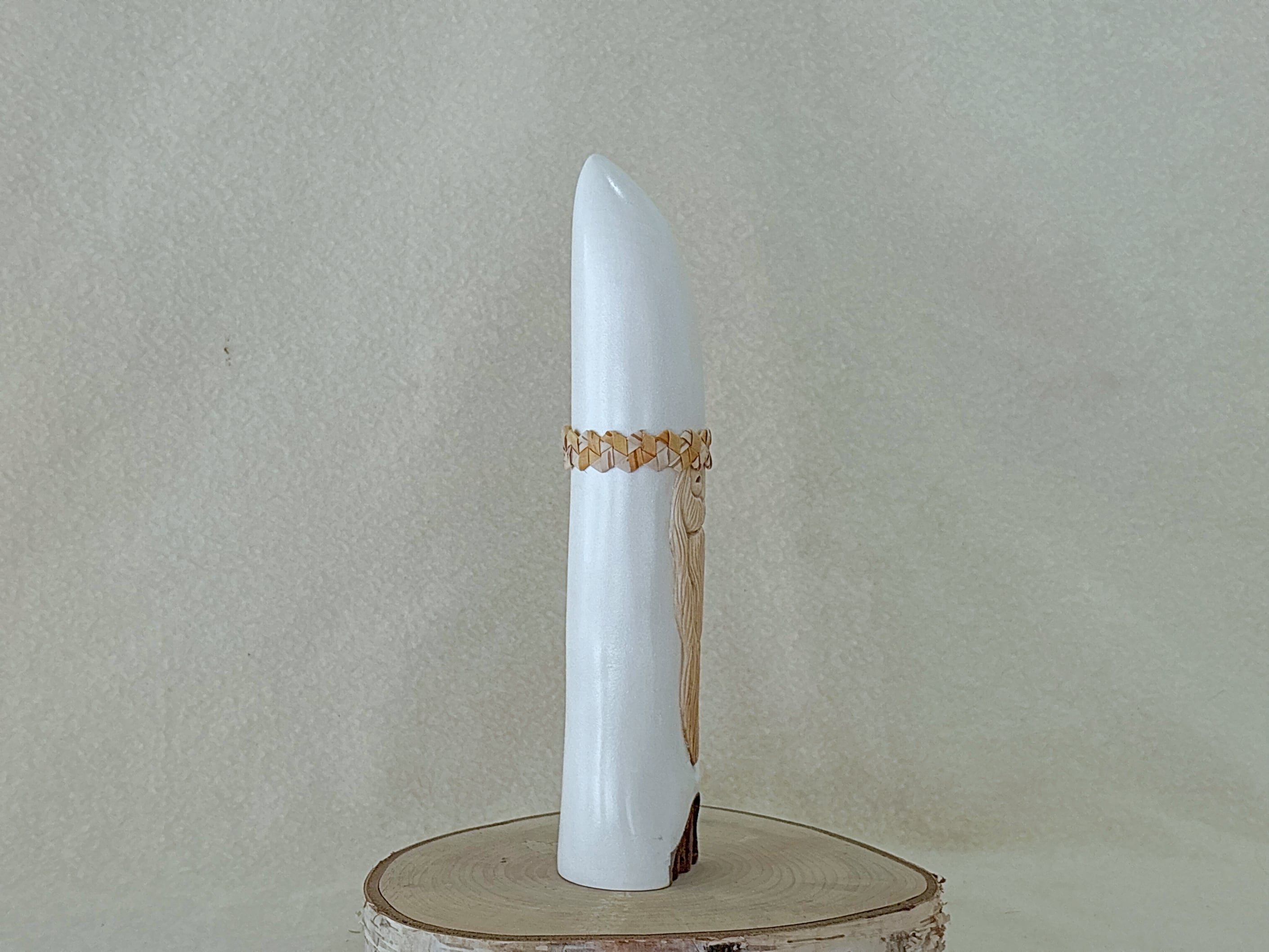 すべて手作業で彫刻し、天然の石を目に使うことで一体一体違う表情を持つサンタクロースです。