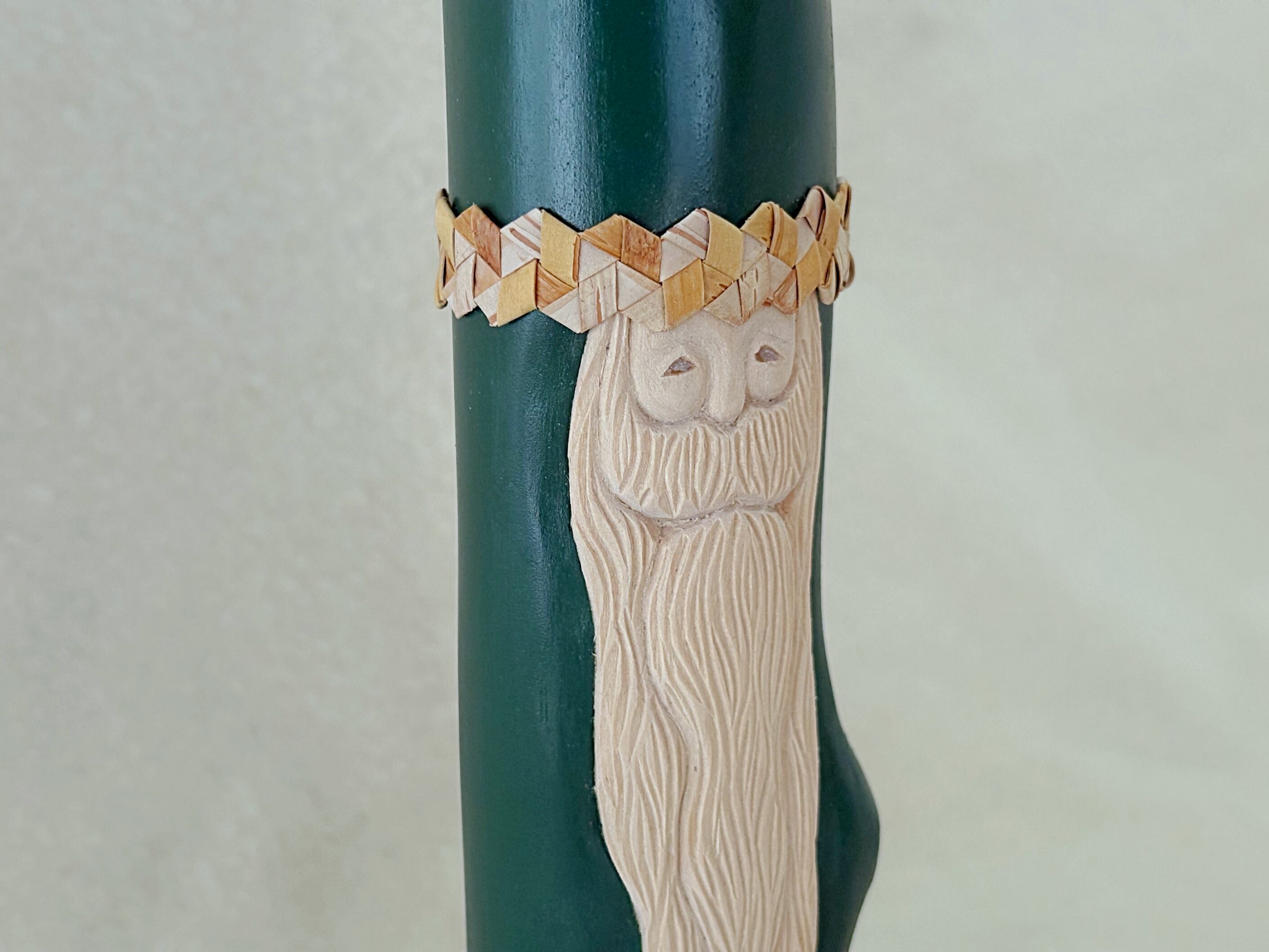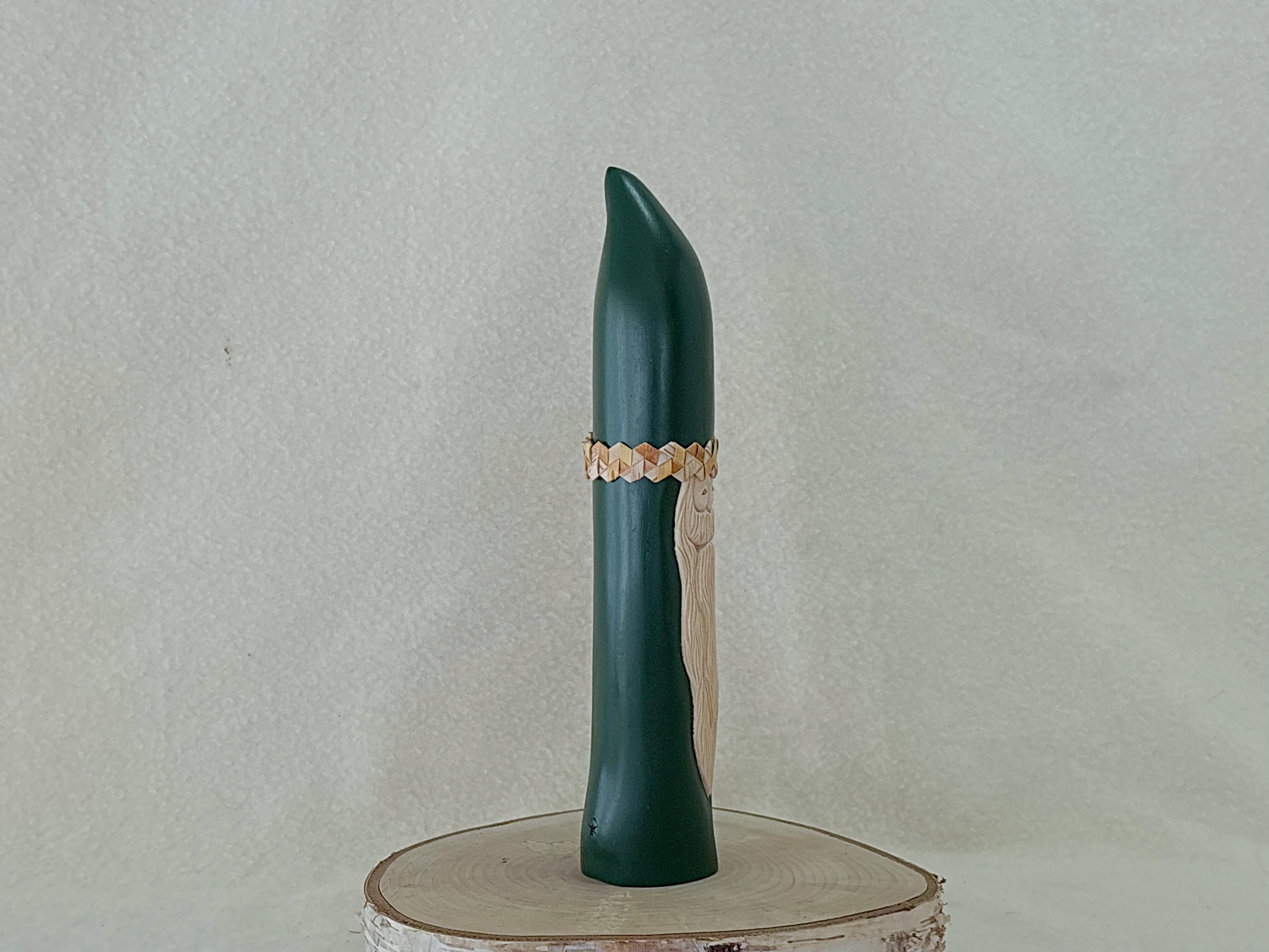 すべて手作業で彫刻し、天然の石を目に使うことで一体一体違う表情を持つサンタクロースです。