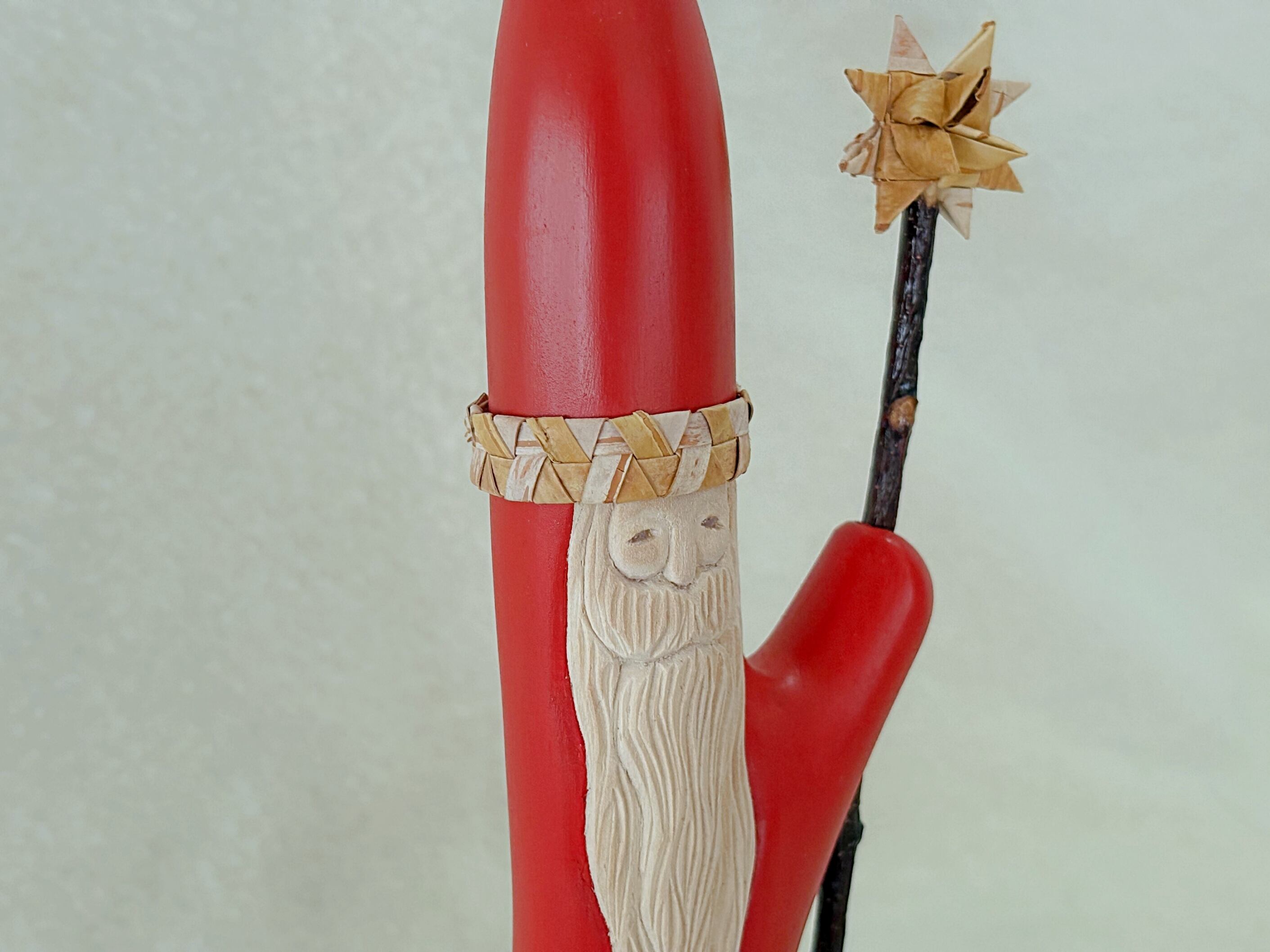 こちらは白樺の樹皮で編んだ星を白樺の小枝につけた、星の杖をもったpremiumサンタです。