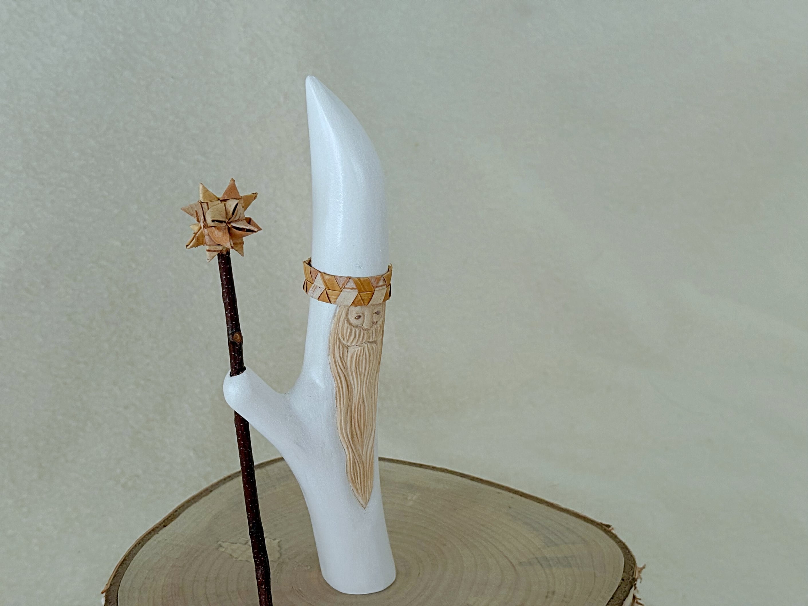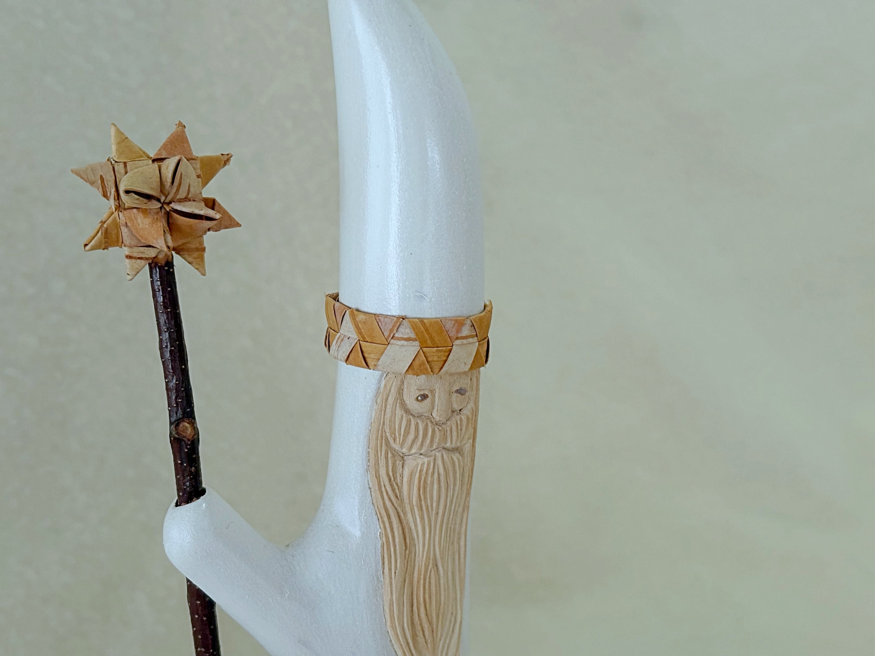 こちらは白樺の樹皮で編んだ星を白樺の小枝につけた、星の杖をもったpremiumサンタです。