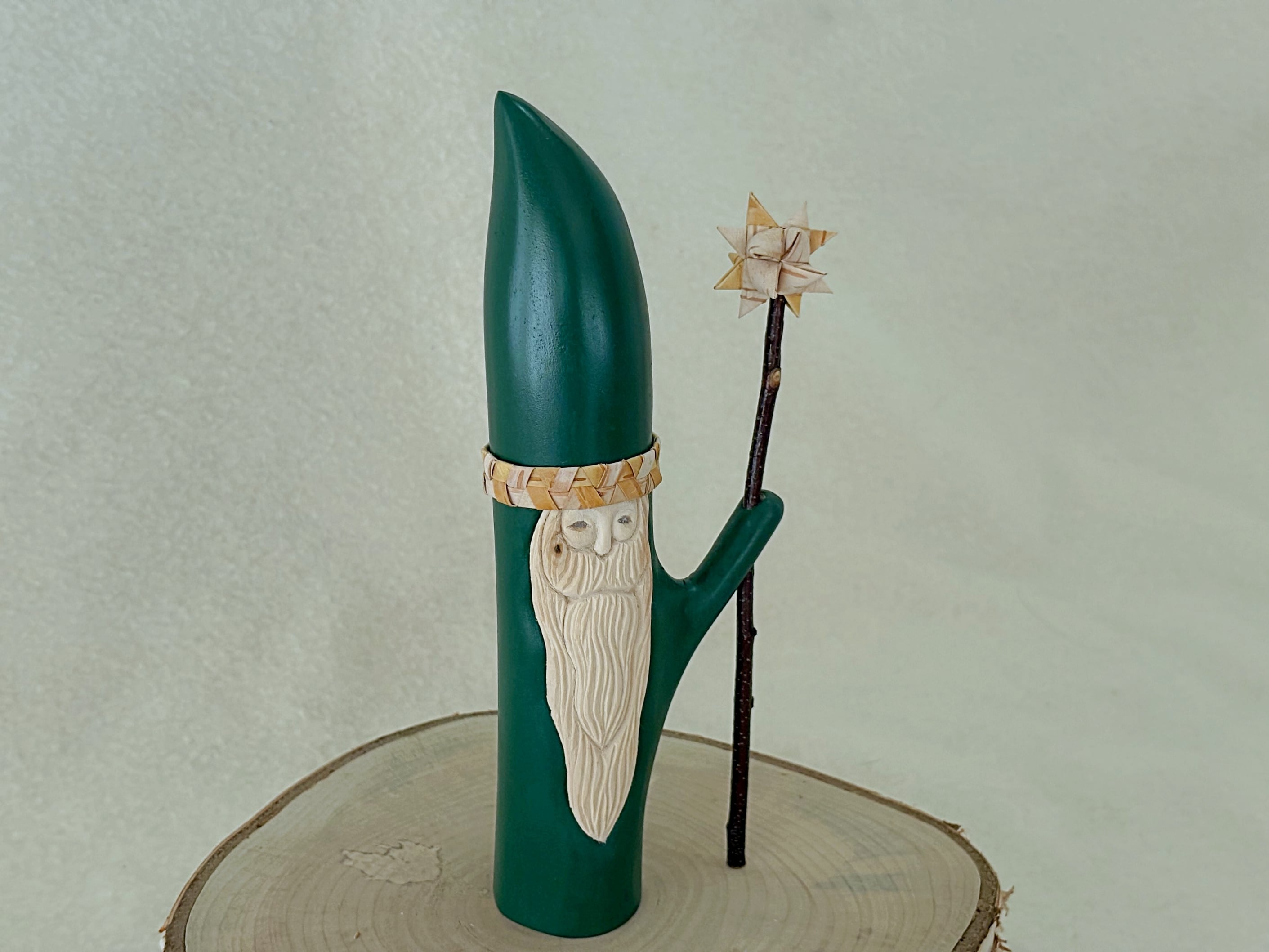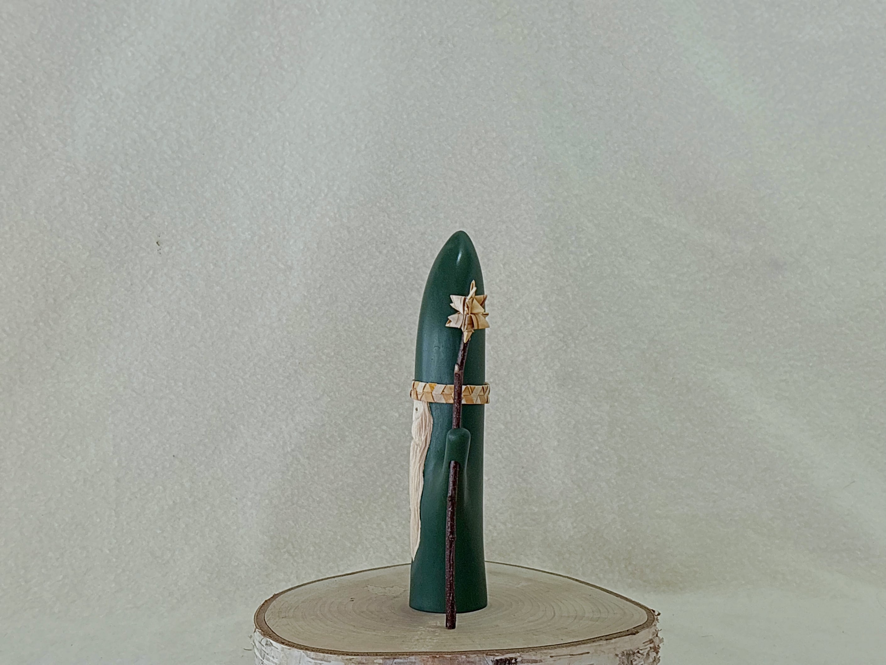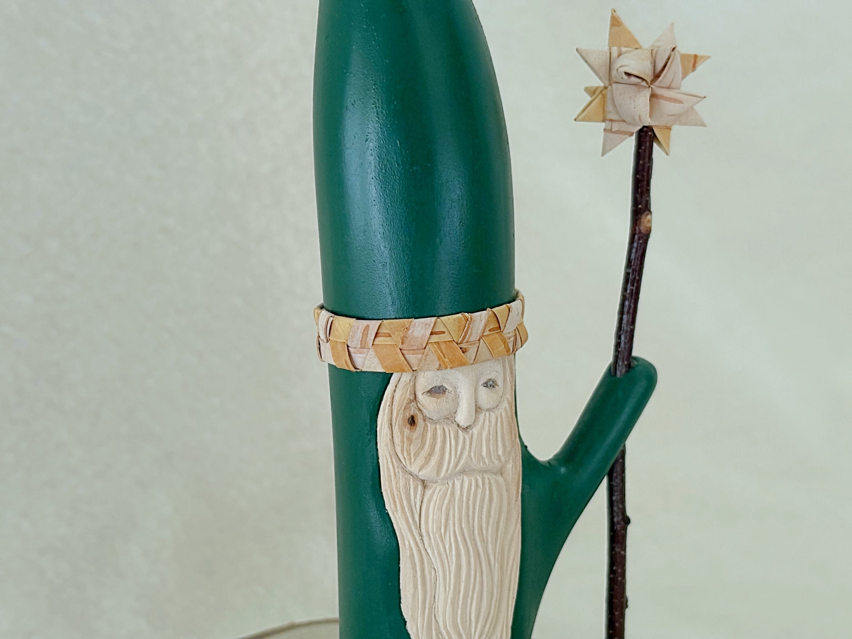 こちらは白樺の樹皮で編んだ星を白樺の小枝につけた、星の杖をもったpremiumサンタです。