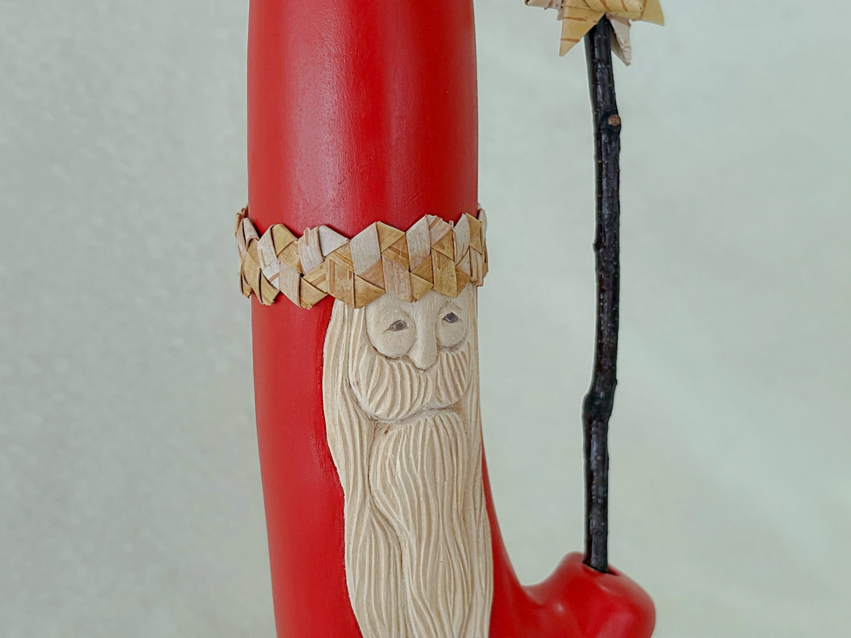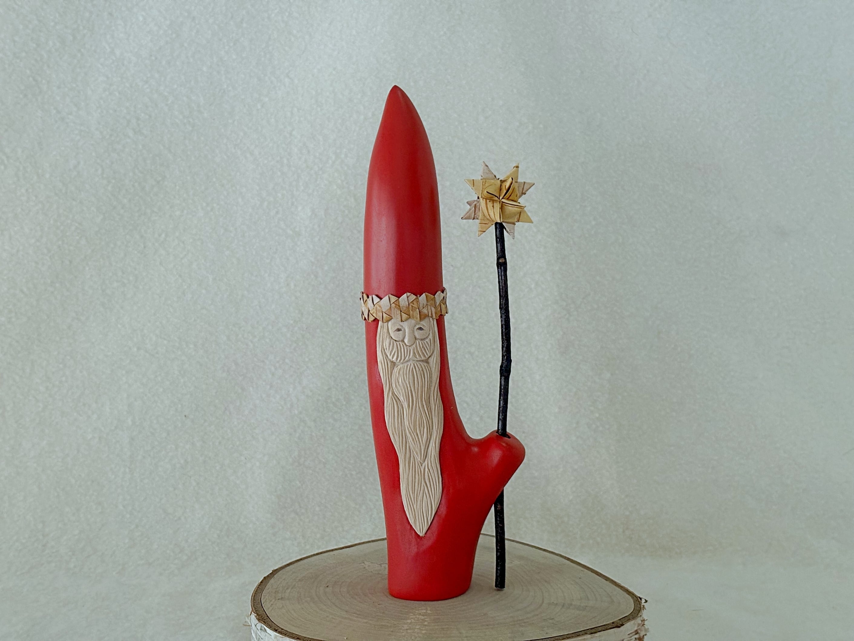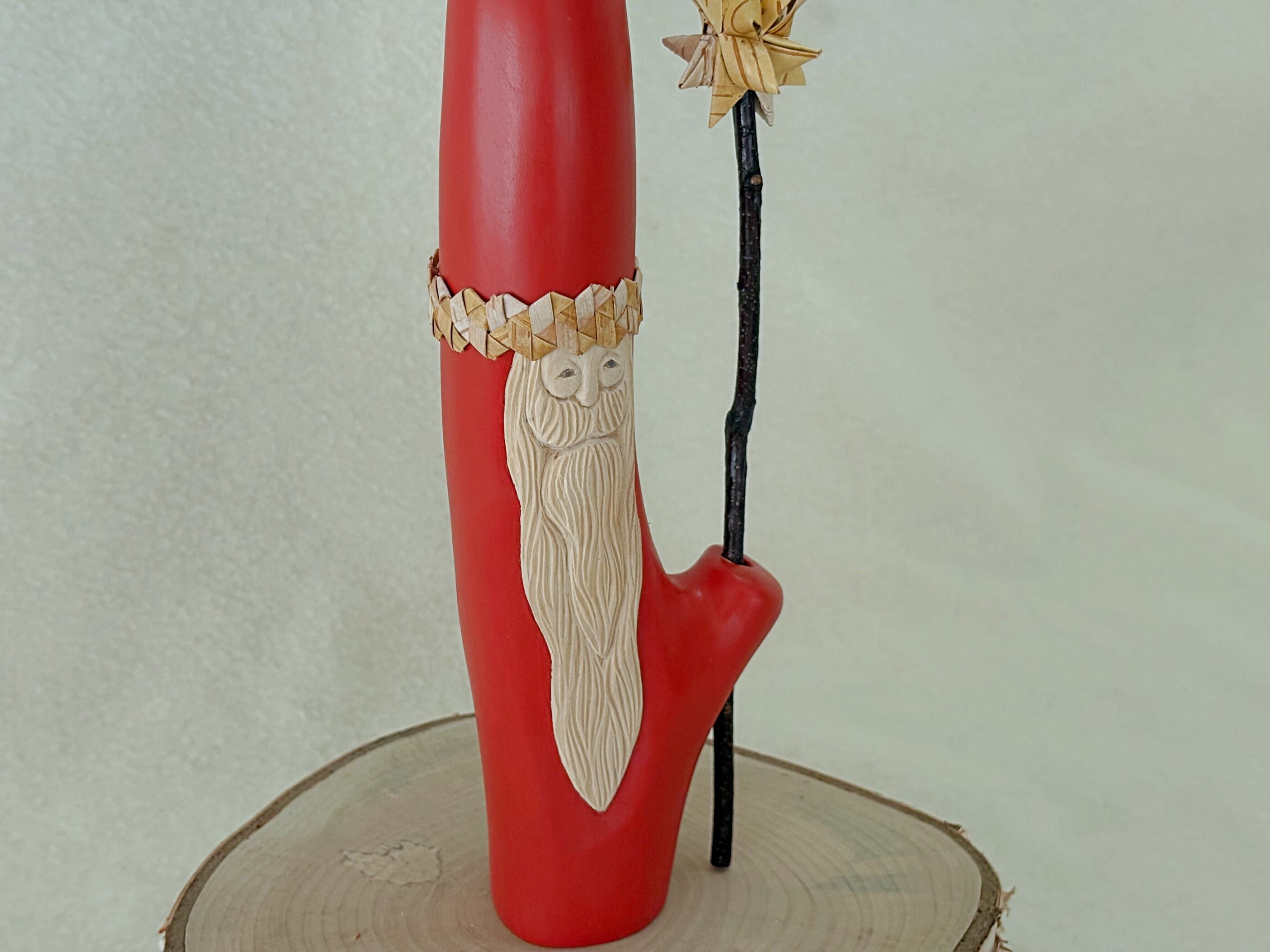 こちらは白樺の樹皮で編んだ星を白樺の小枝につけた星の杖をもったpremiumサンタです。