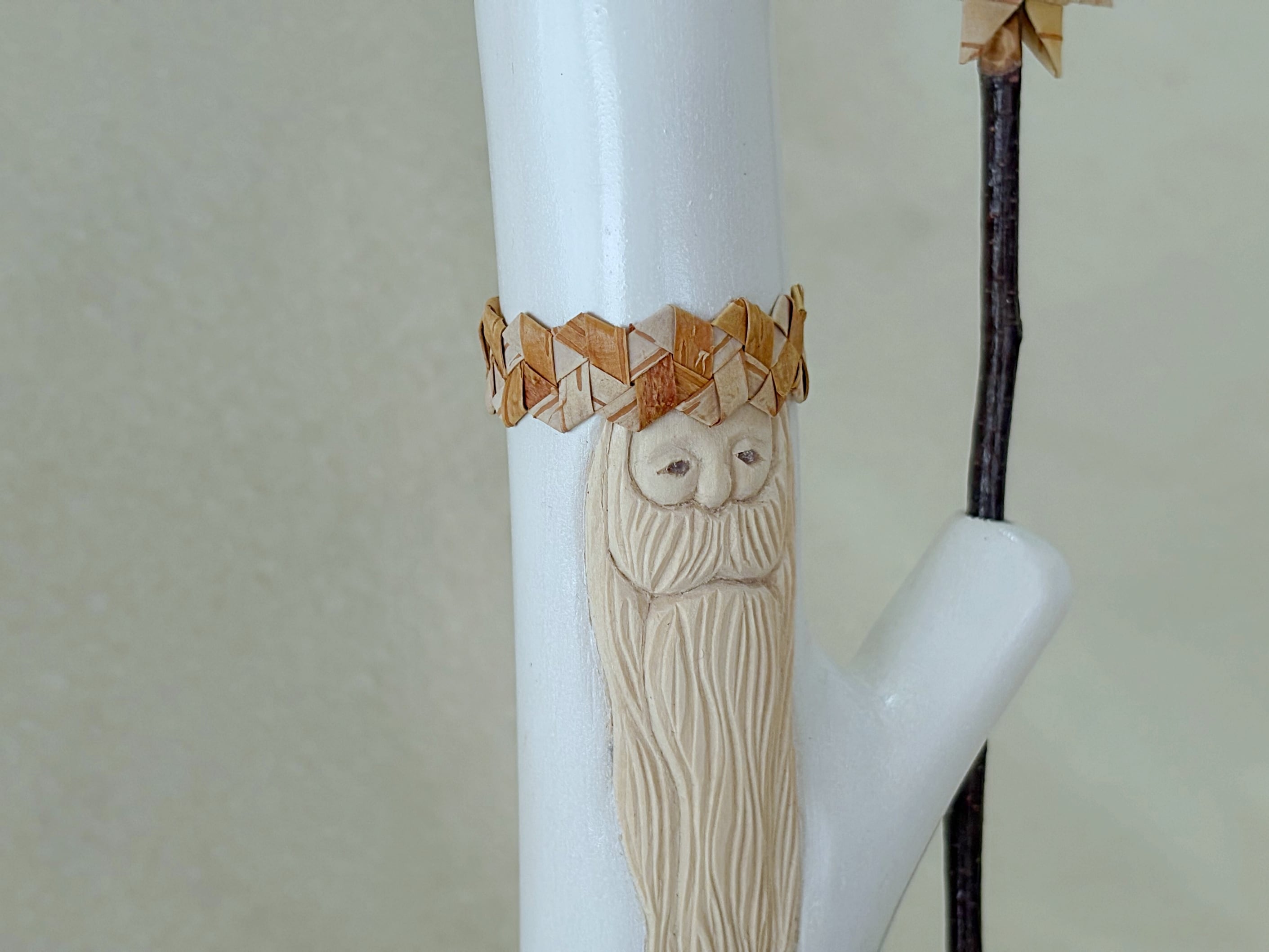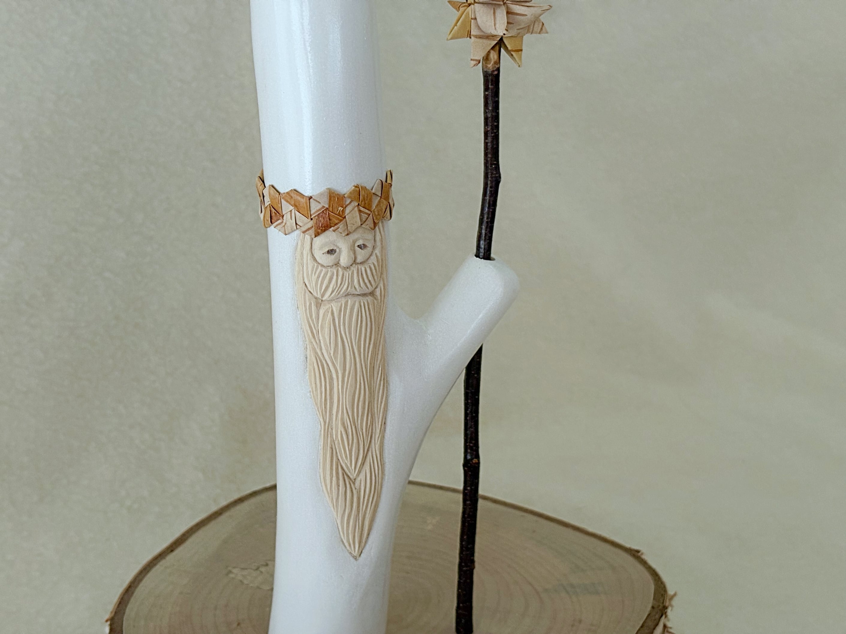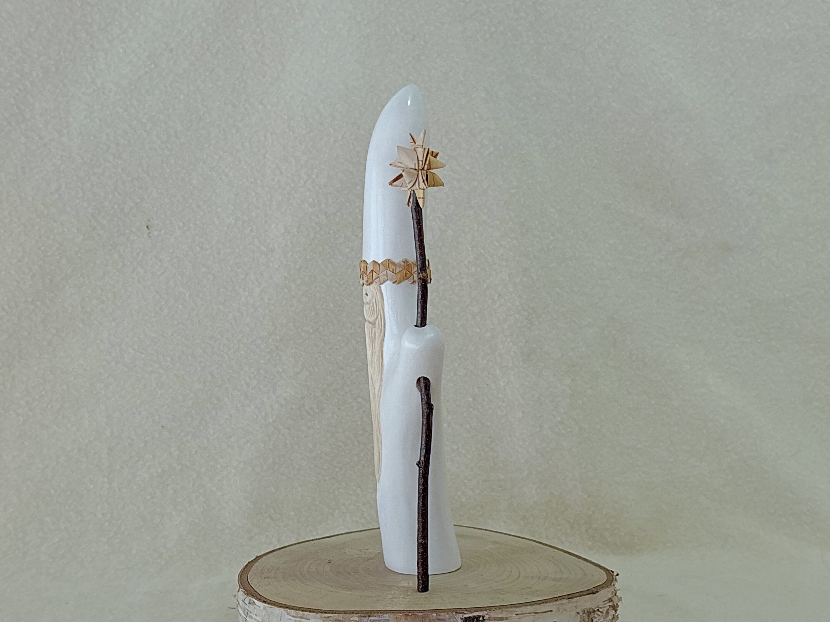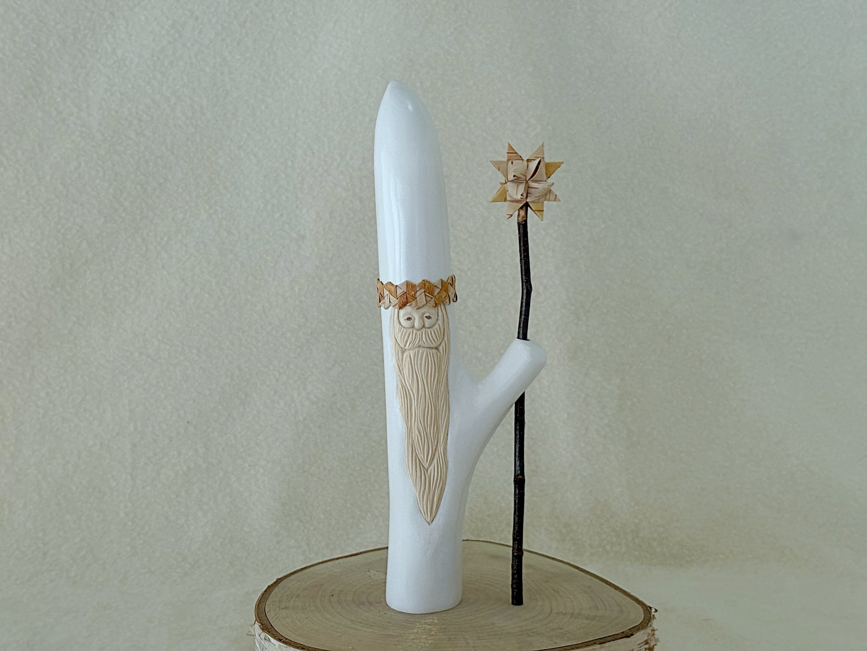 こちらは白樺の樹皮で編んだ星を白樺の小枝につけた星の杖をもったpremiumサンタです。
