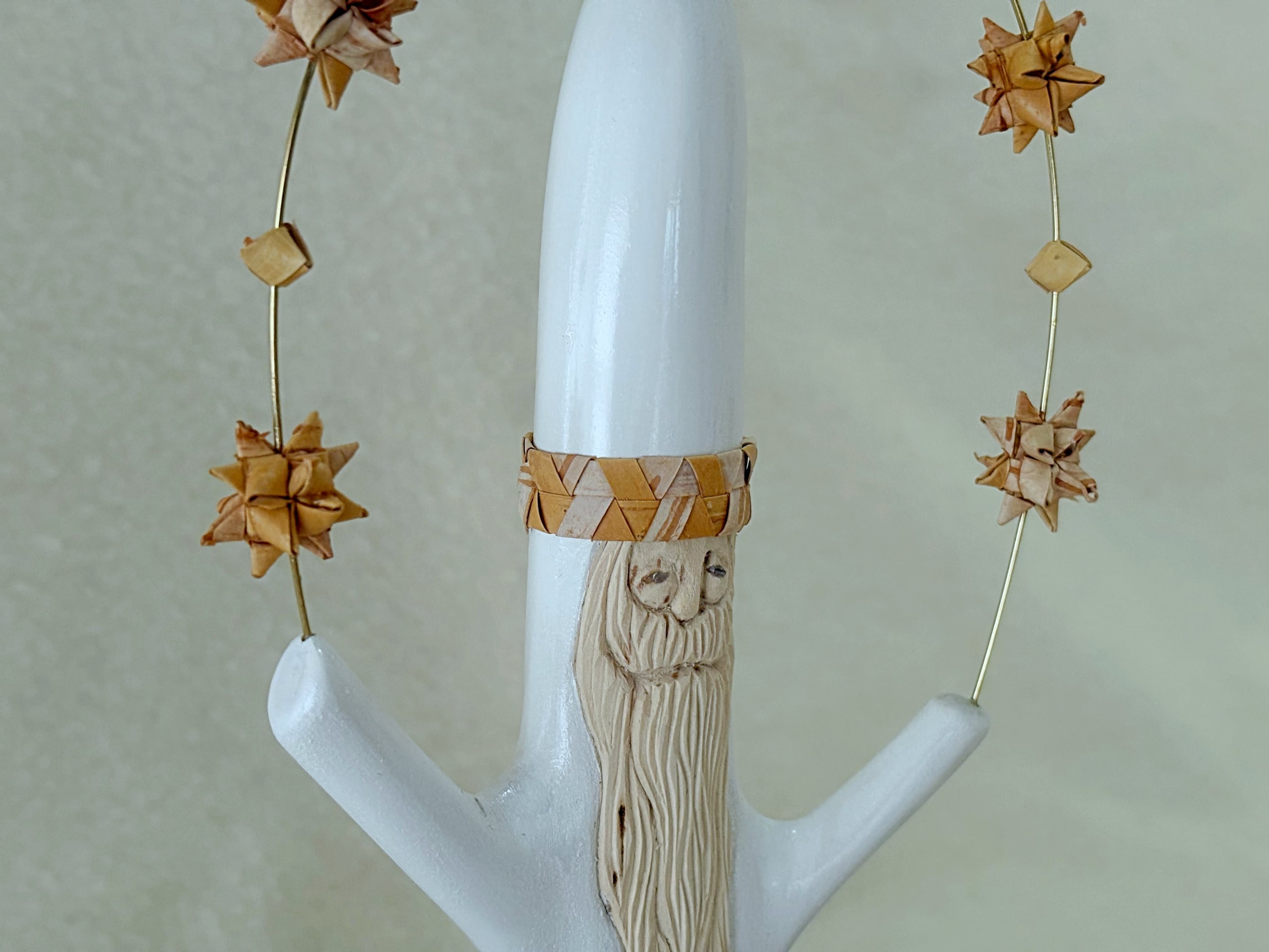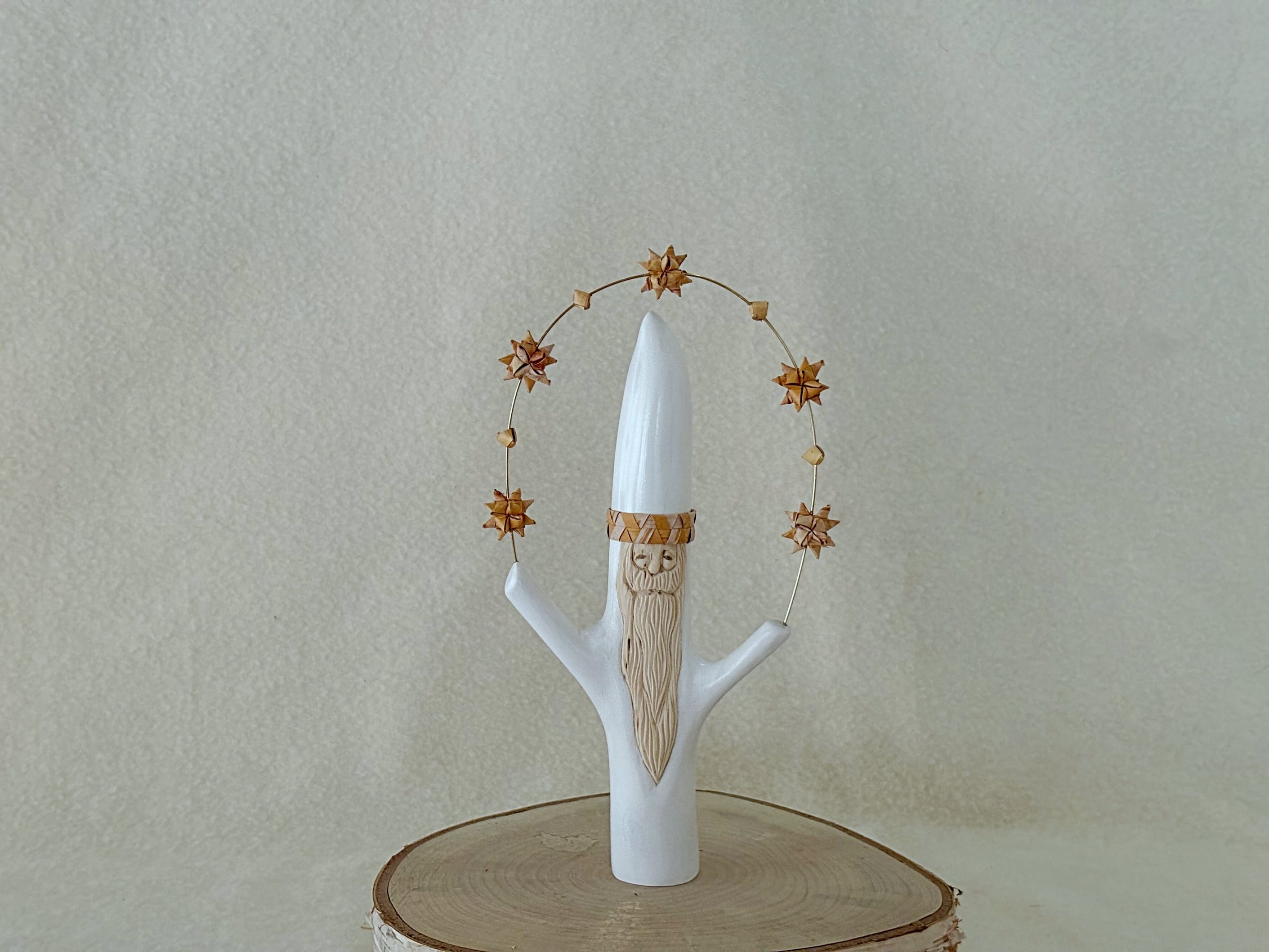 すべて手作業で彫刻し、天然の石を目に使うことで一体一体違う表情を持つサンタクロースです。
