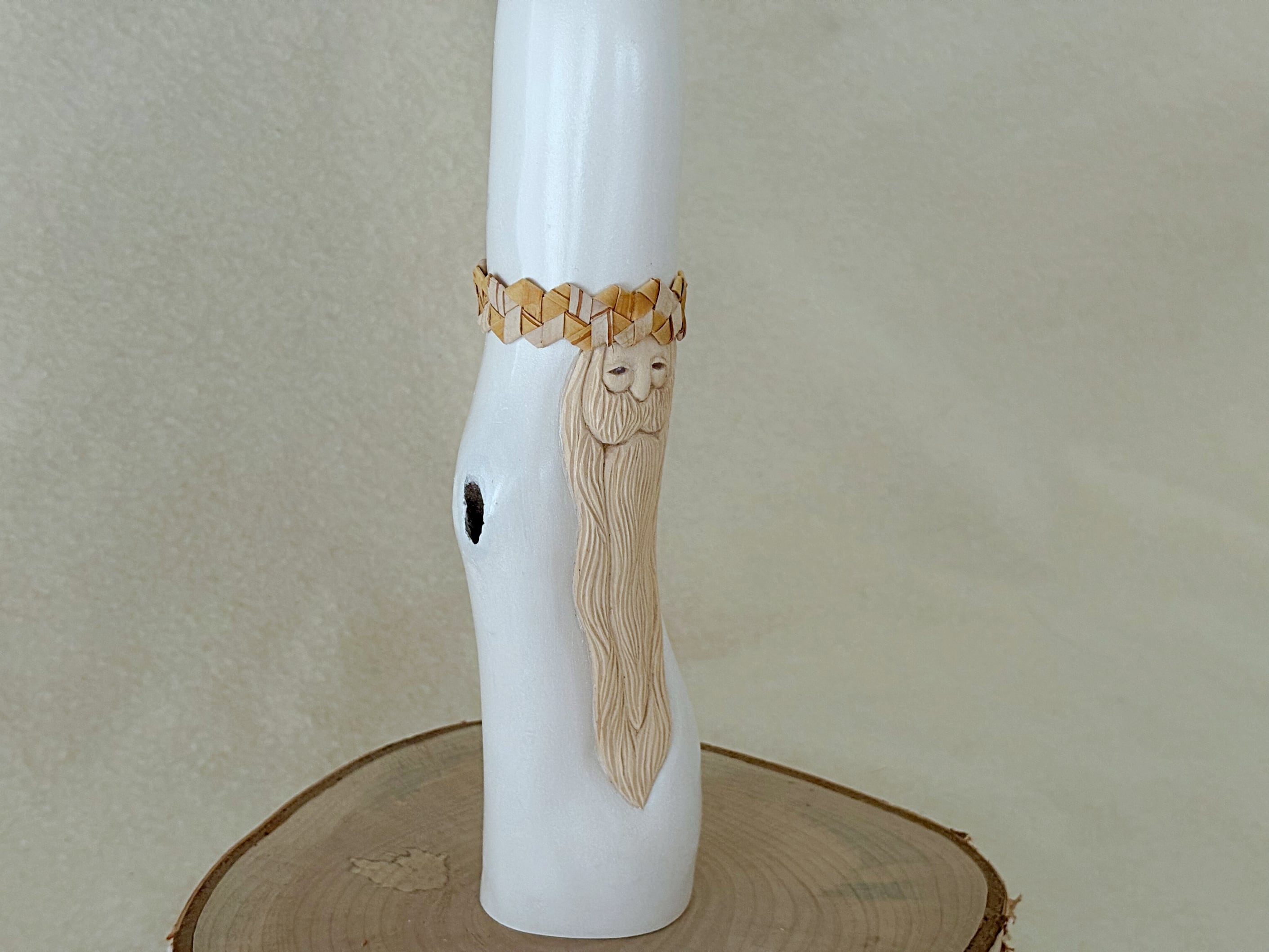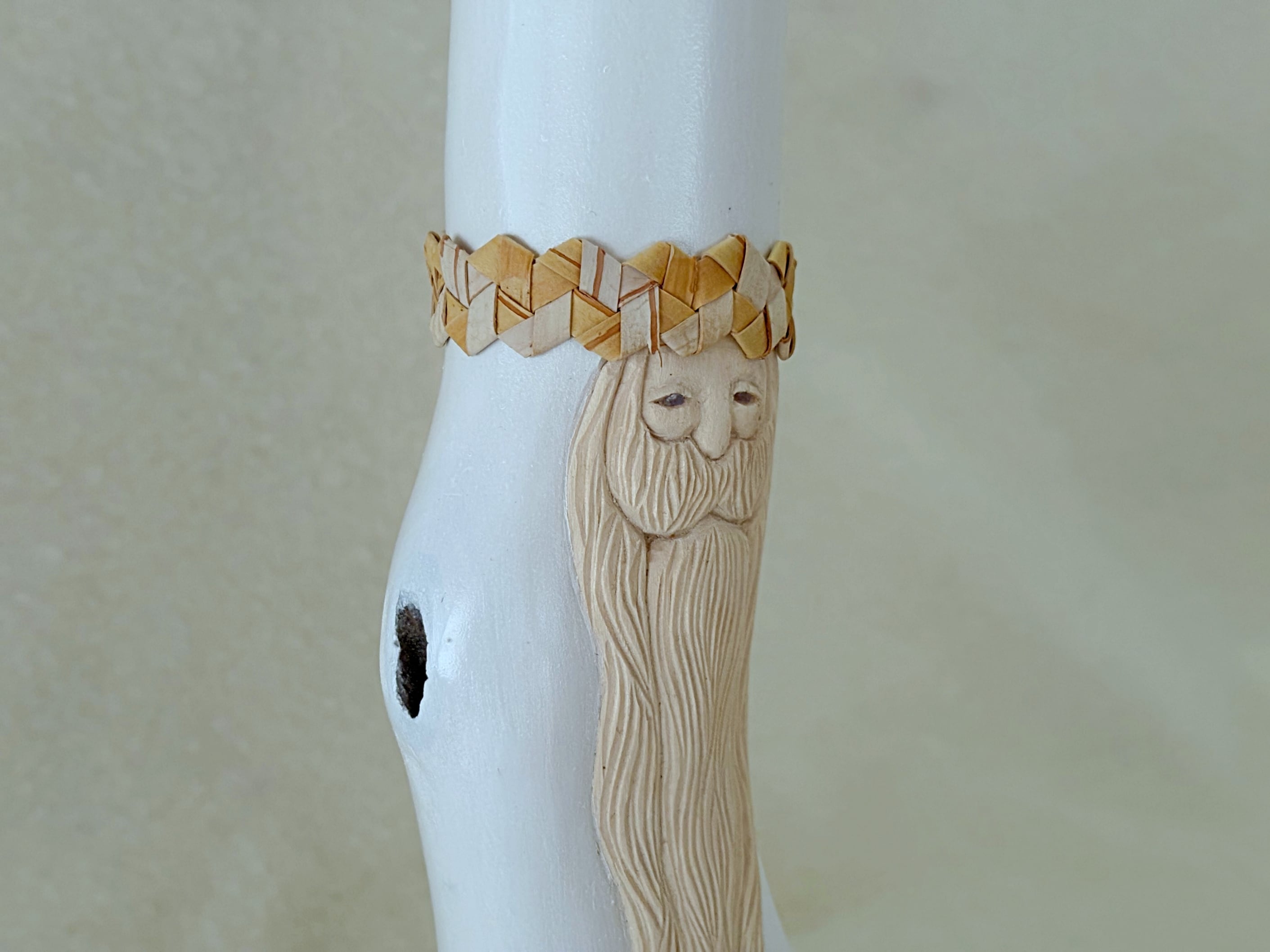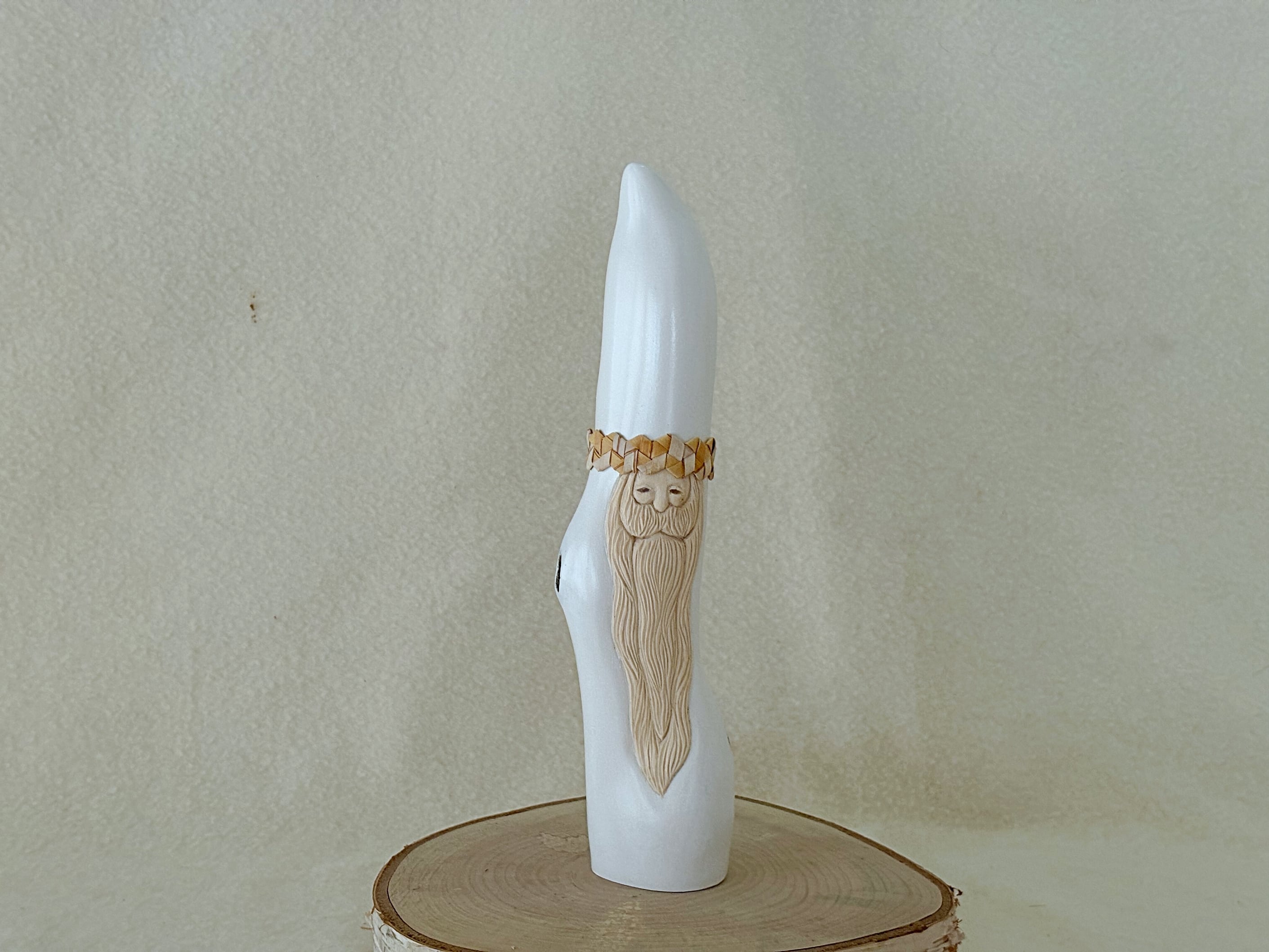 すべて手作業で彫刻し、天然の石を目に使うことで一体一体違う表情を持つサンタクロースです。