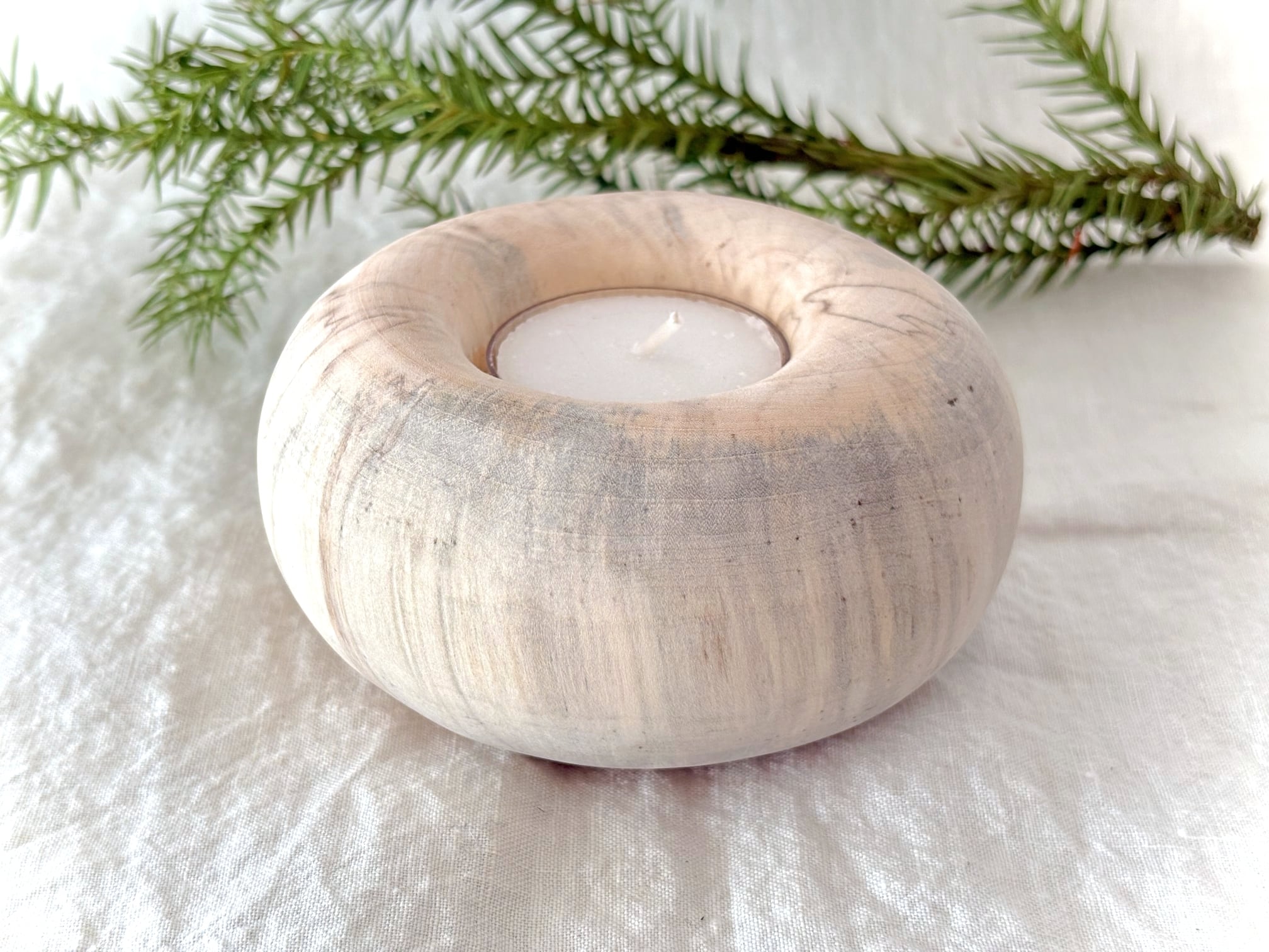 白樺の枝を輪切り状にしてコロンとした形をつくっています。