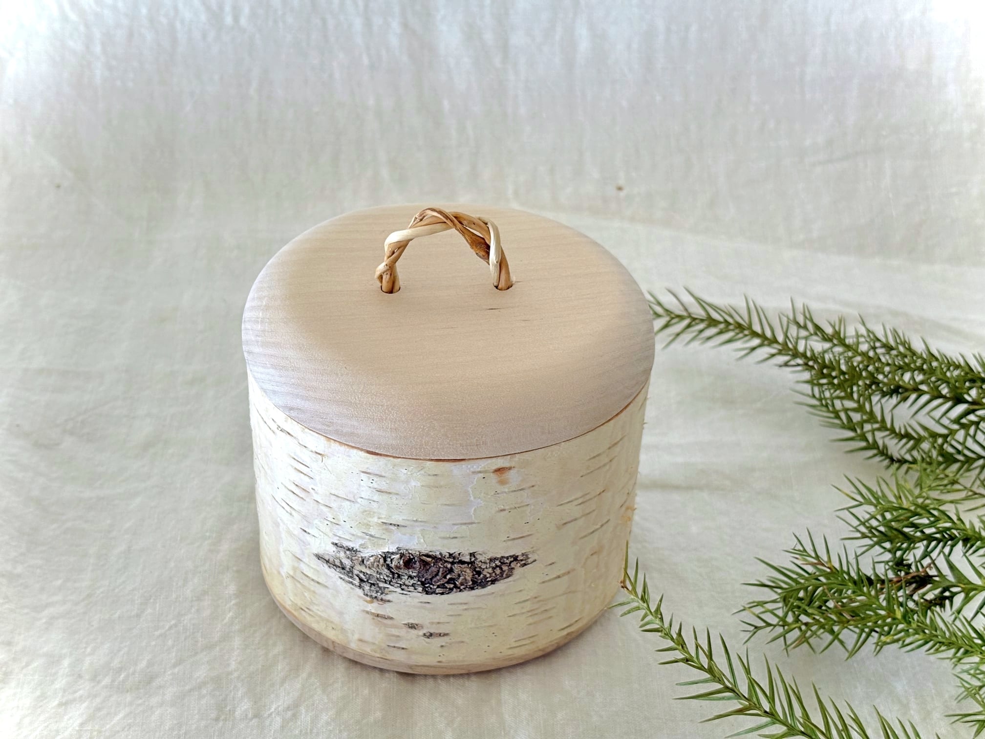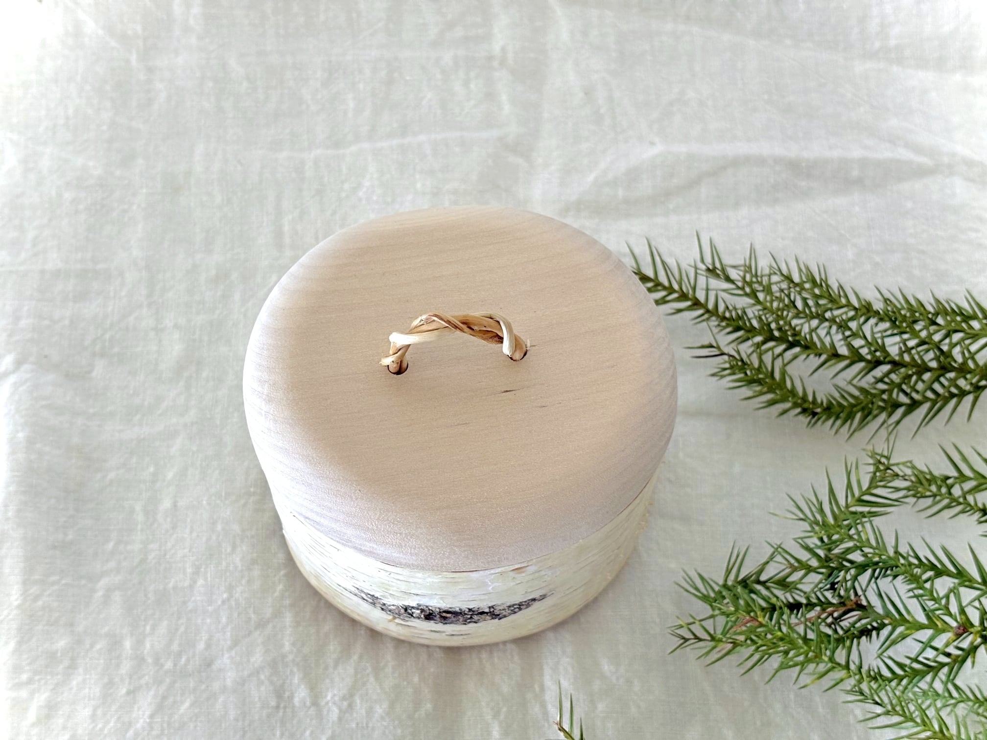 底板、蓋も白樺で、取手には白樺の根っこ。