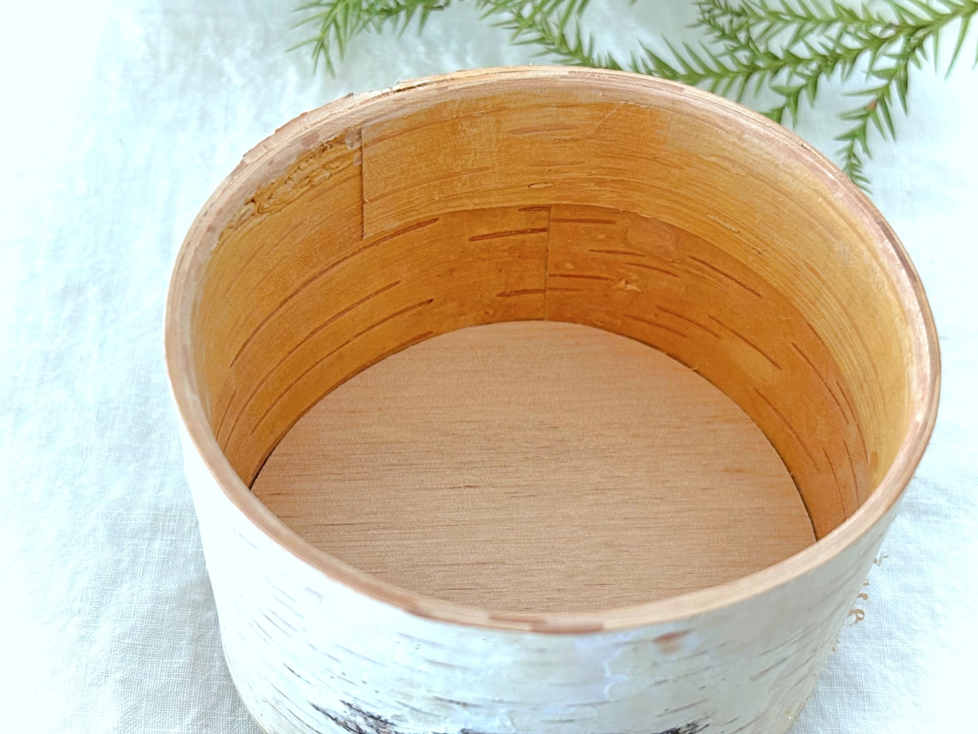 内側にもう一枚樹皮を張り、蓋が当たる部分にはさらにもう一枚樹皮を。