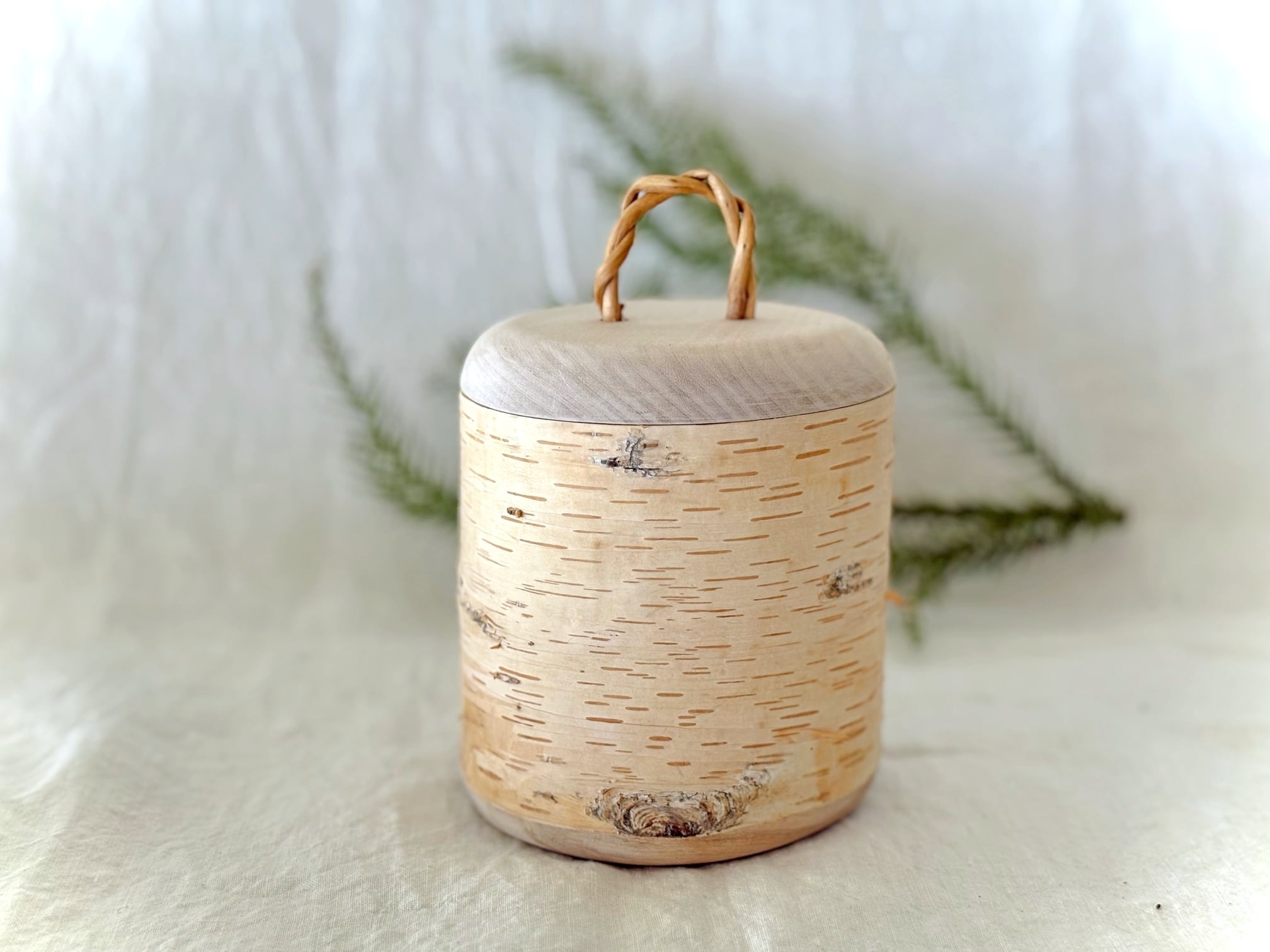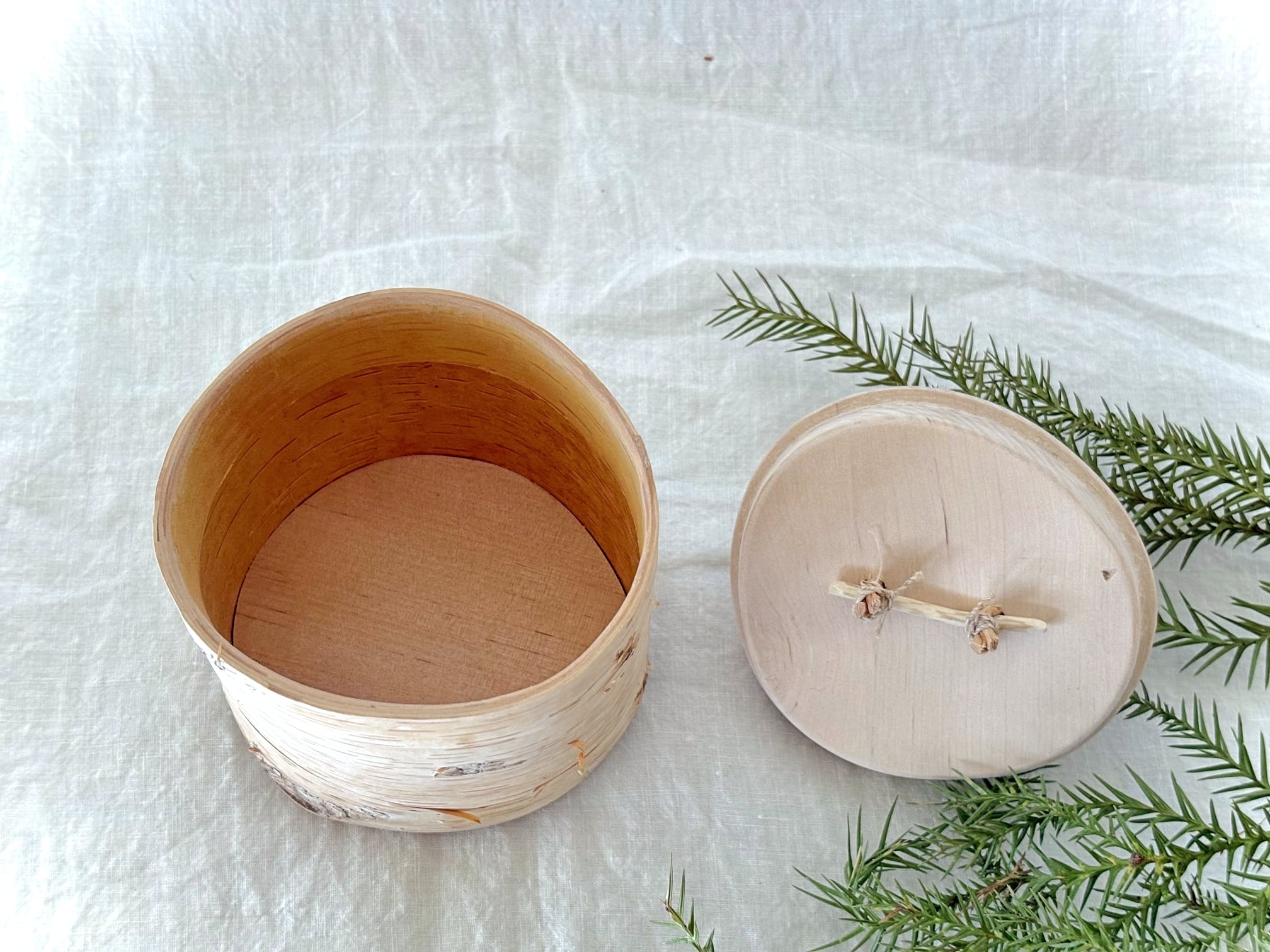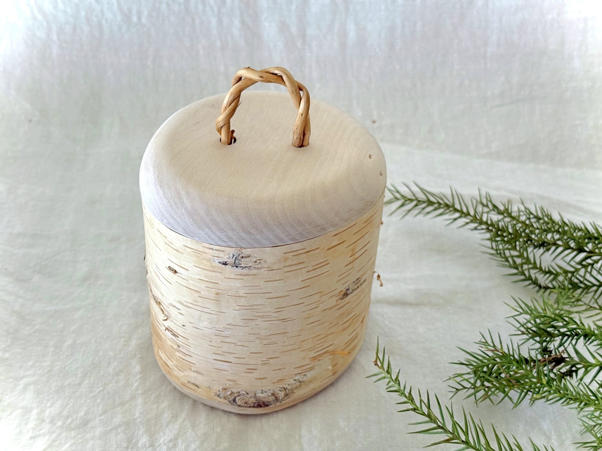 底板、蓋も白樺で、取手には白樺の根っこ。