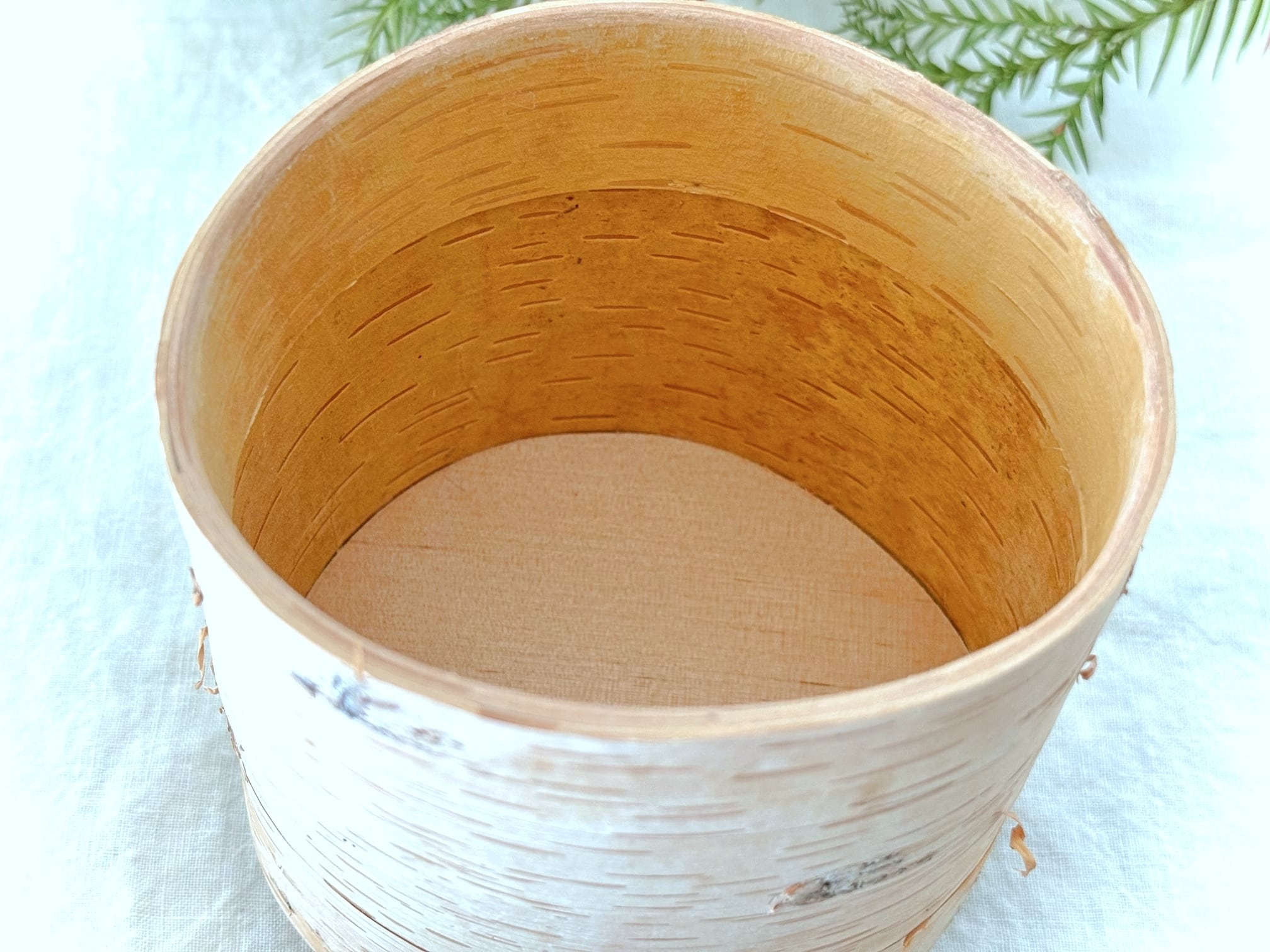 内側にもう一枚樹皮を張り、蓋が当たる部分にはさらにもう一枚樹皮を。