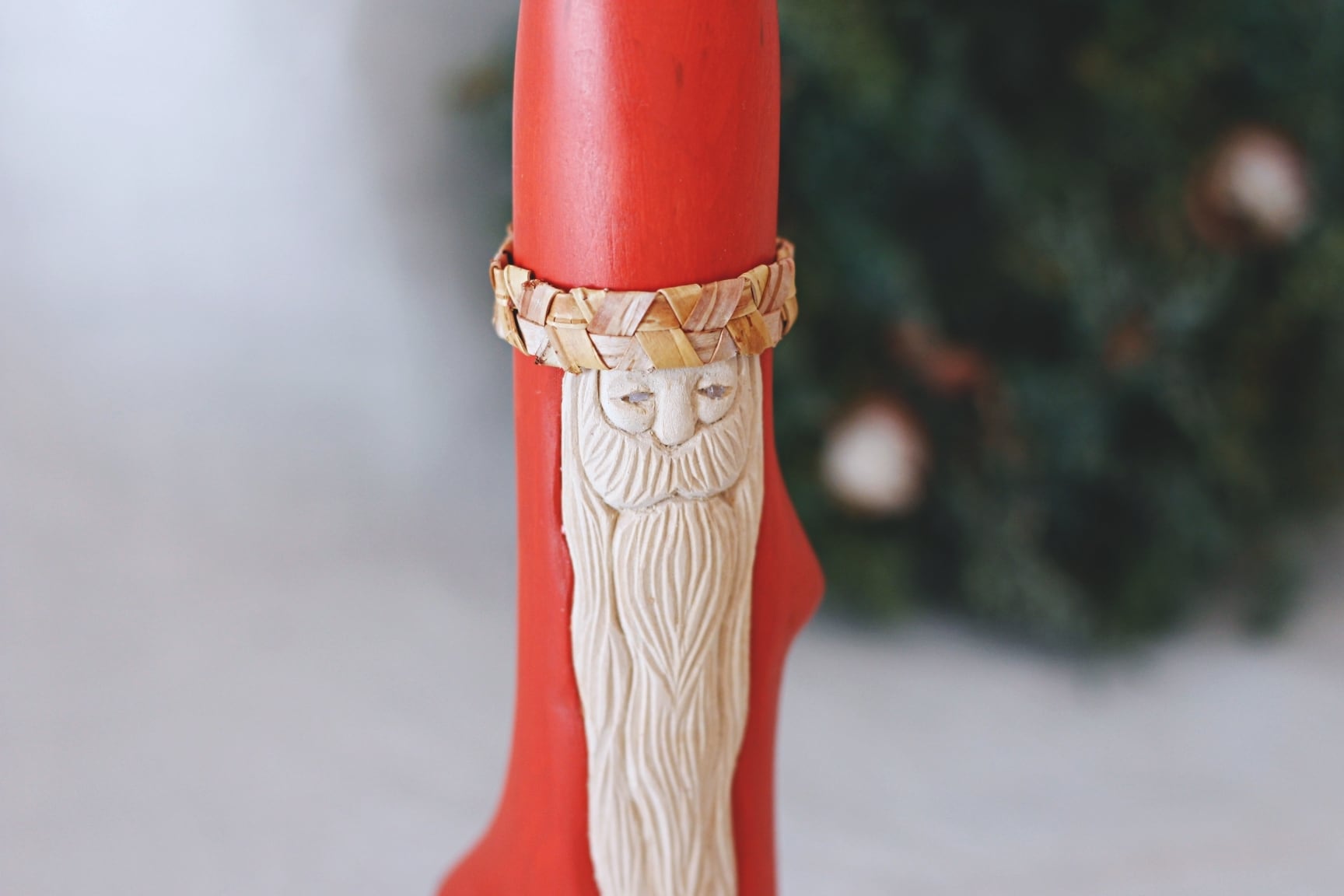 すべて手作業で彫刻し、天然の石を目に使うことで一体一体違う表情を持つサンタクロースです。