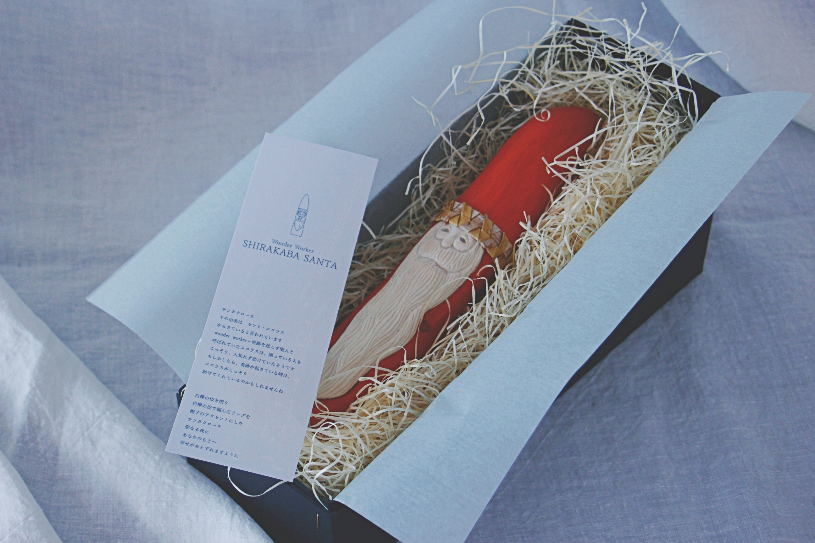 すべて手作業で彫刻し、天然の石を目に使うことで一体一体違う表情を持つサンタクロースです。