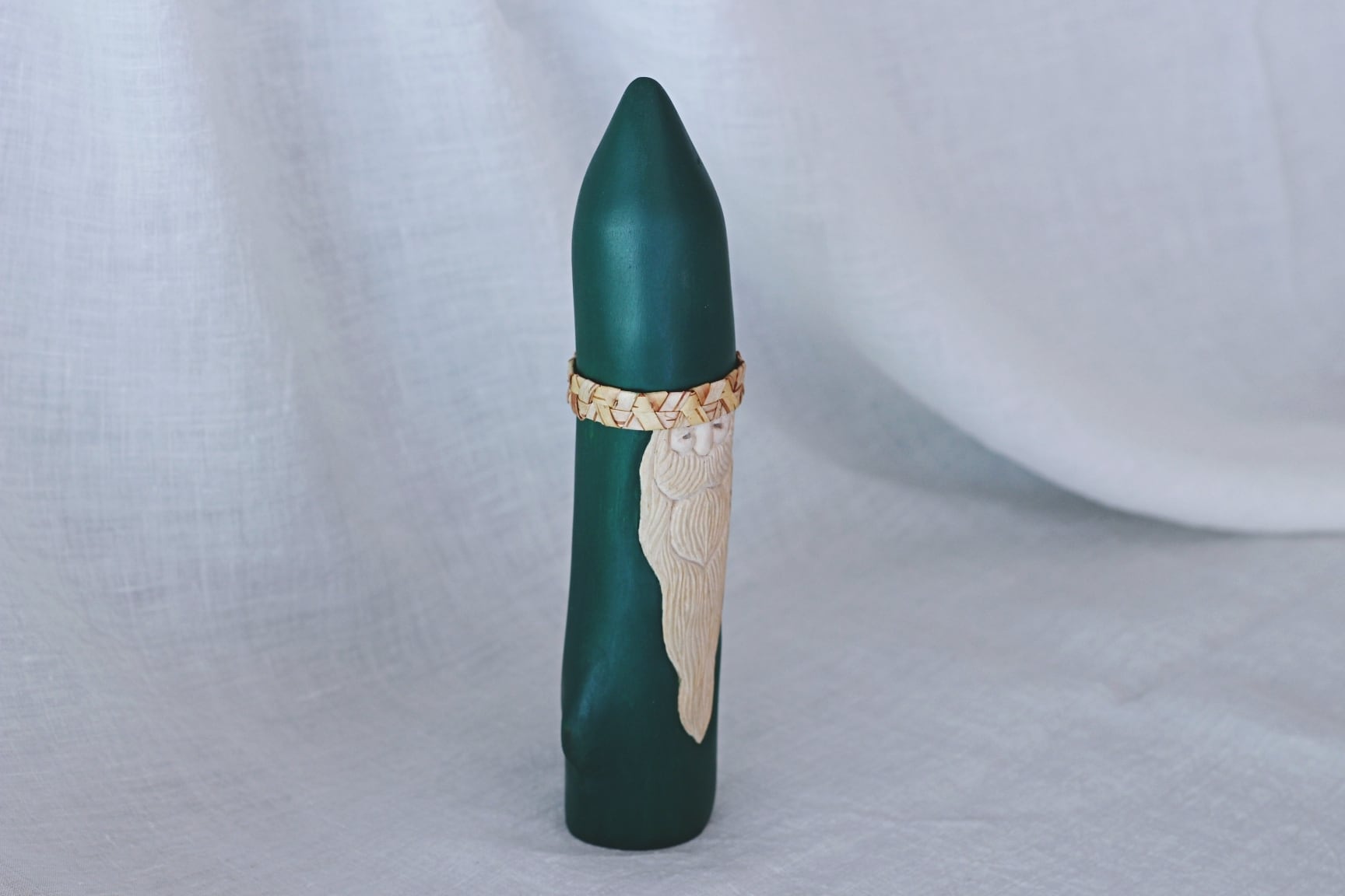 すべて手作業で彫刻し、天然の石を目に使うことで一体一体違う表情を持つサンタクロースです。